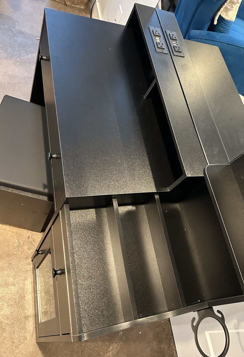 This vanity is fully assembled and ready to walk out the door! Skip the hours of putting this together yourself! Black finish with a large mirror, tons of storage, and everything you need to get ready in style.