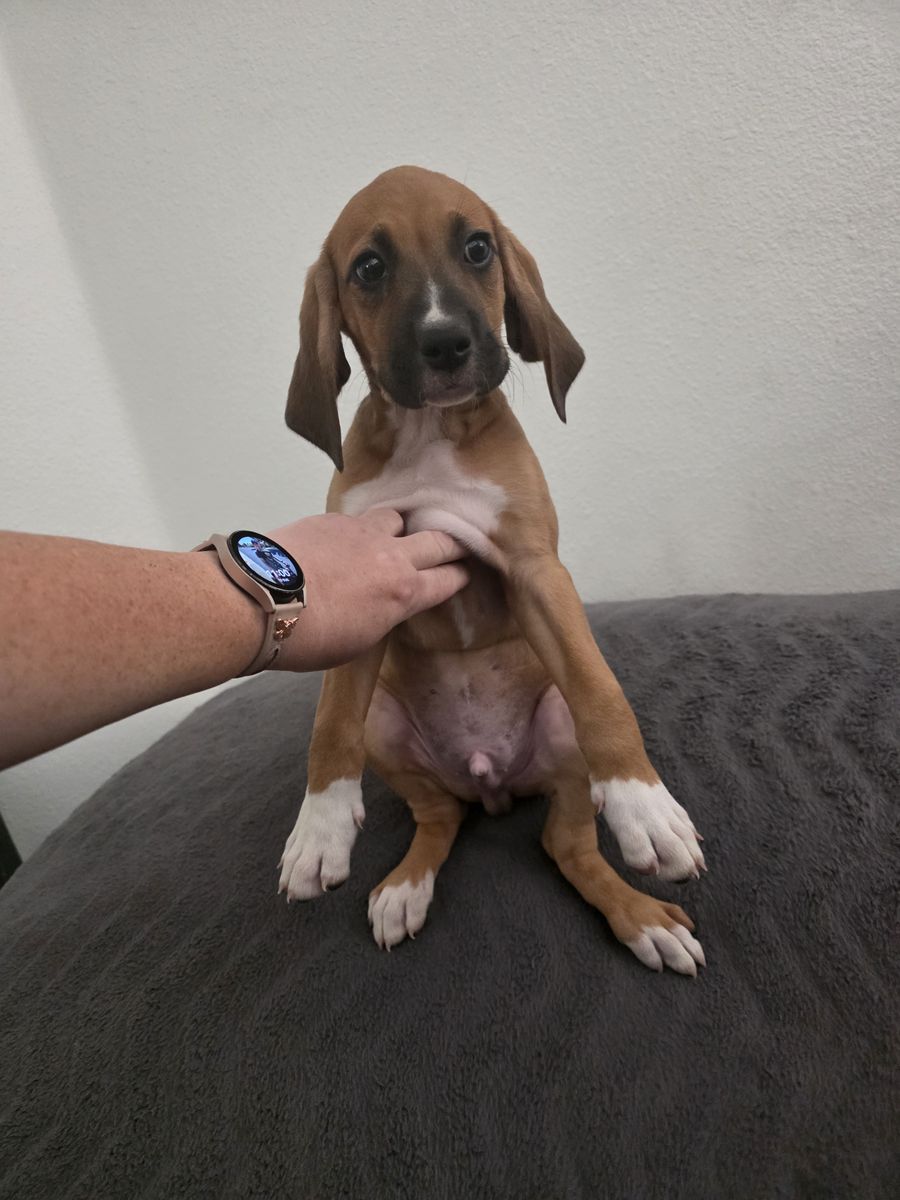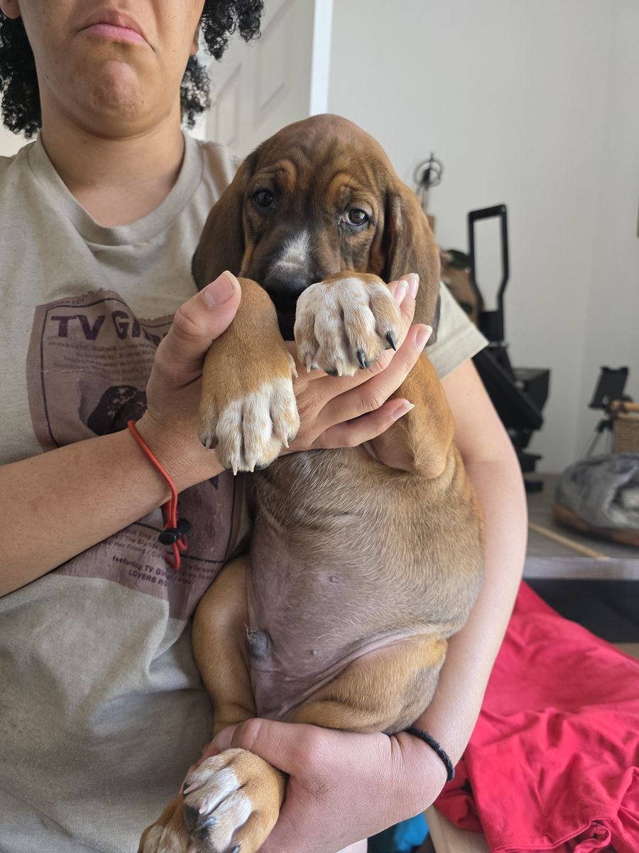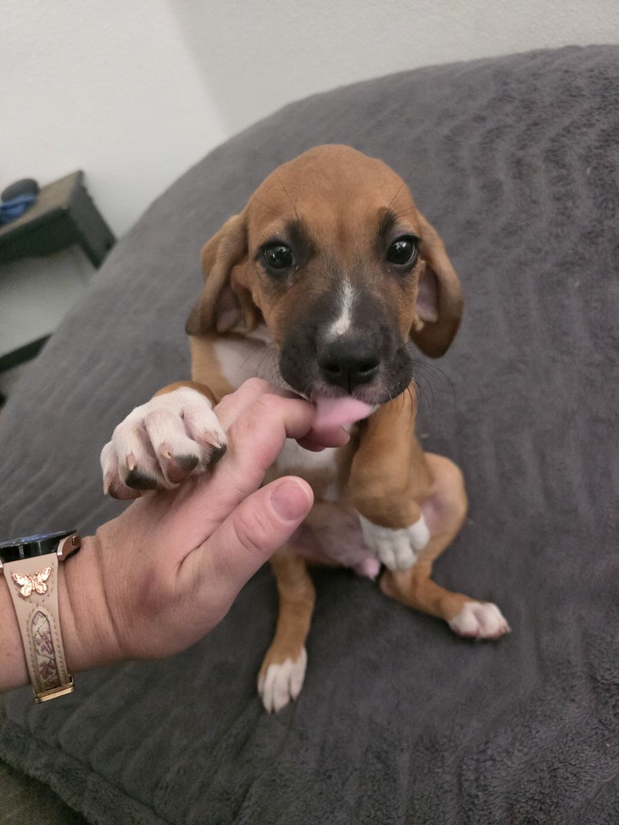 The sweetest blue tick coonhound boxer mix puppies ever! They're super cute, snuggly and playful! They have been around other dogs, kids, held often, vacuums, and other everyday household stuff!!