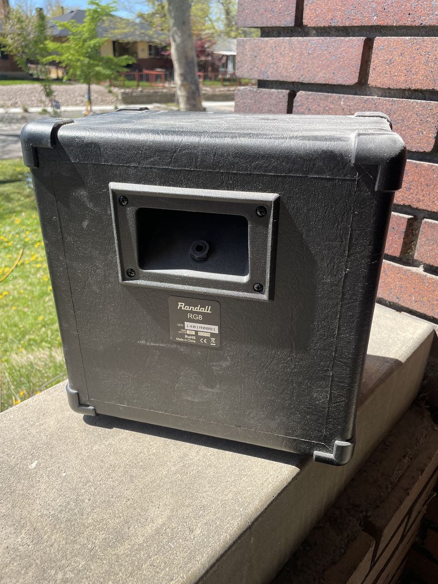 ZelleAdorable Randall RG8 guitar cabinet. Used it on my work bench with an Orange Micro to test out gear.