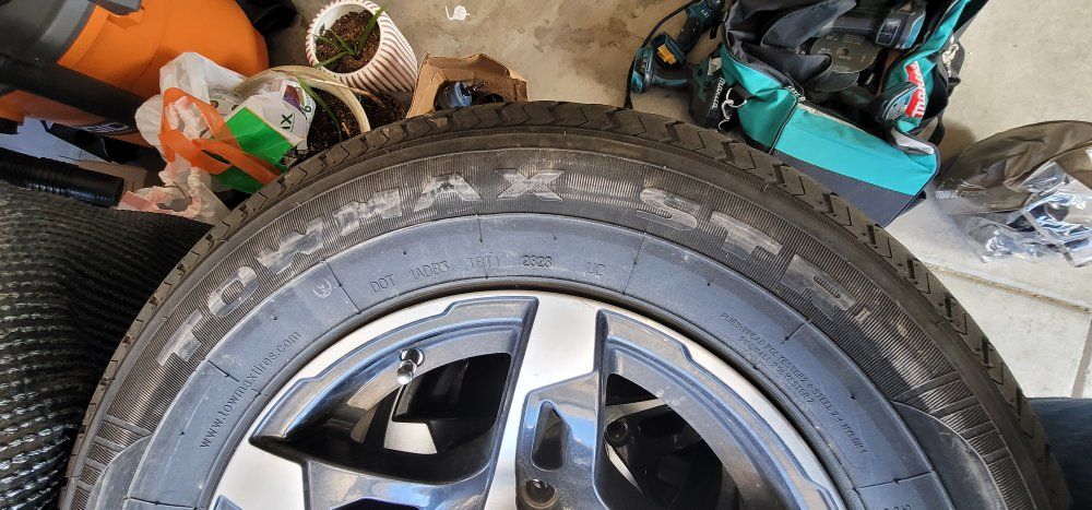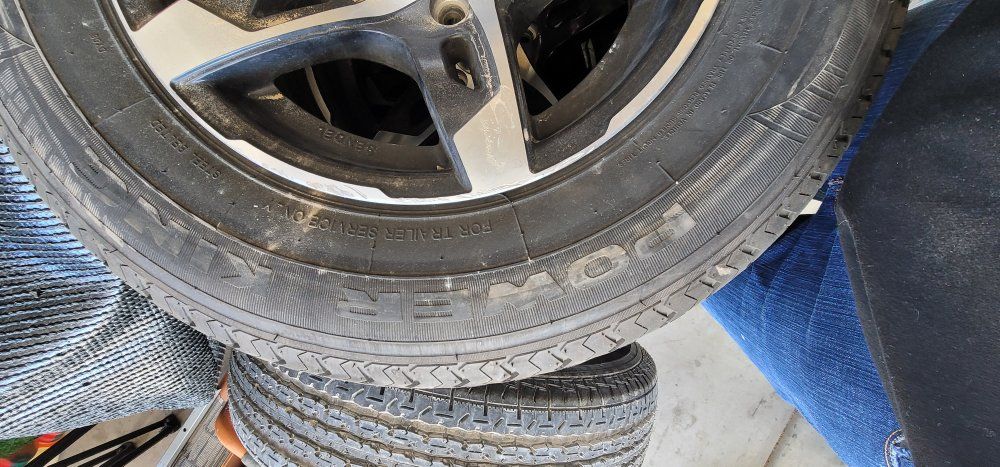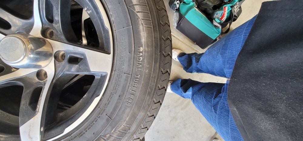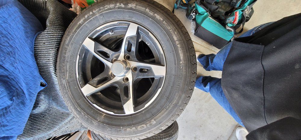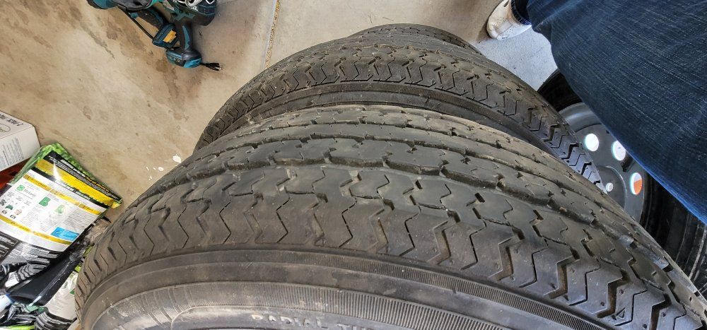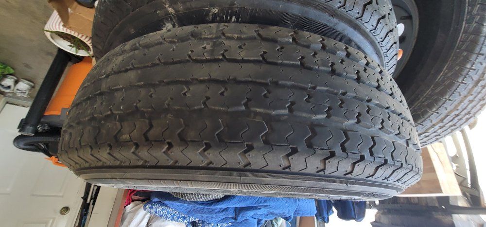 Selling my rv rims and tires. they fit 3500 axles. tires are newer only driving on 3 times. I am including the spare. Text if interested. they are 5x4.5 spacing