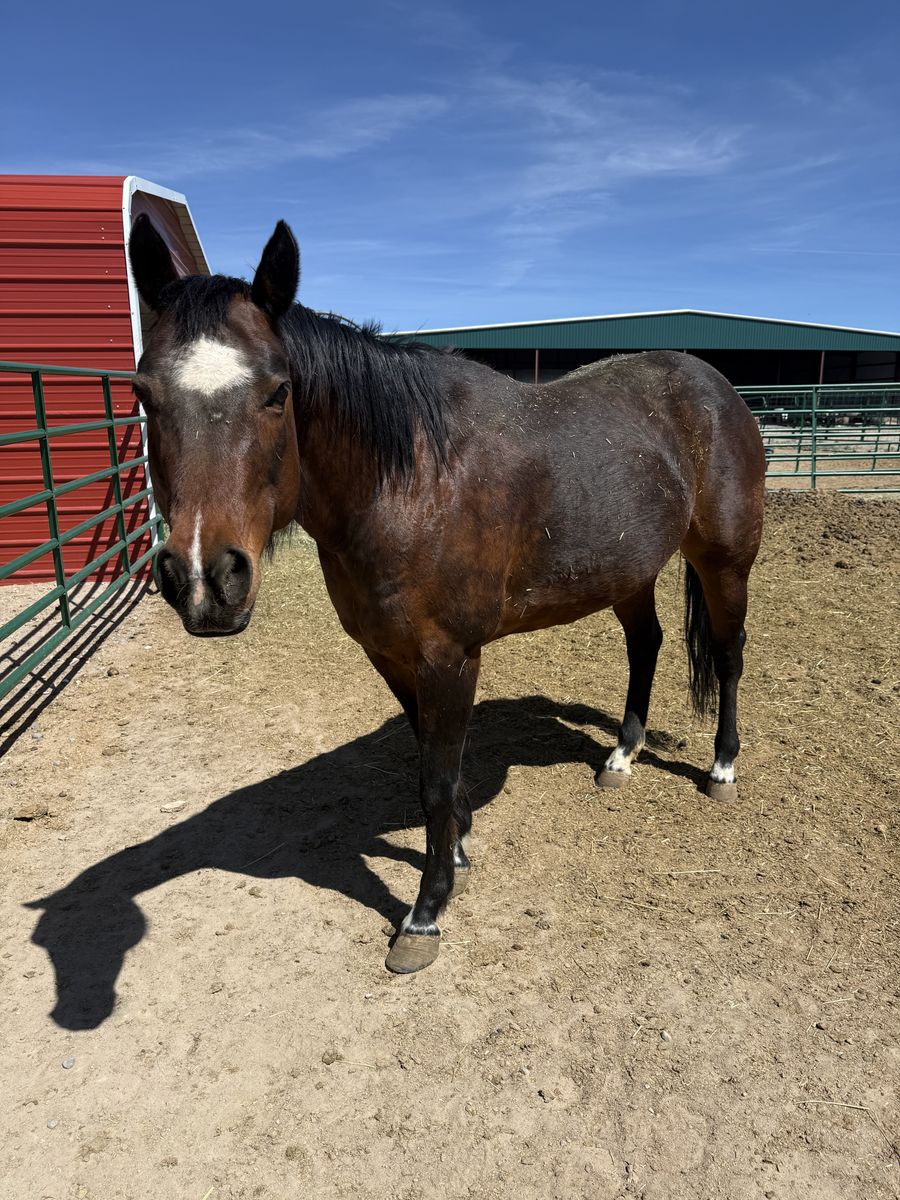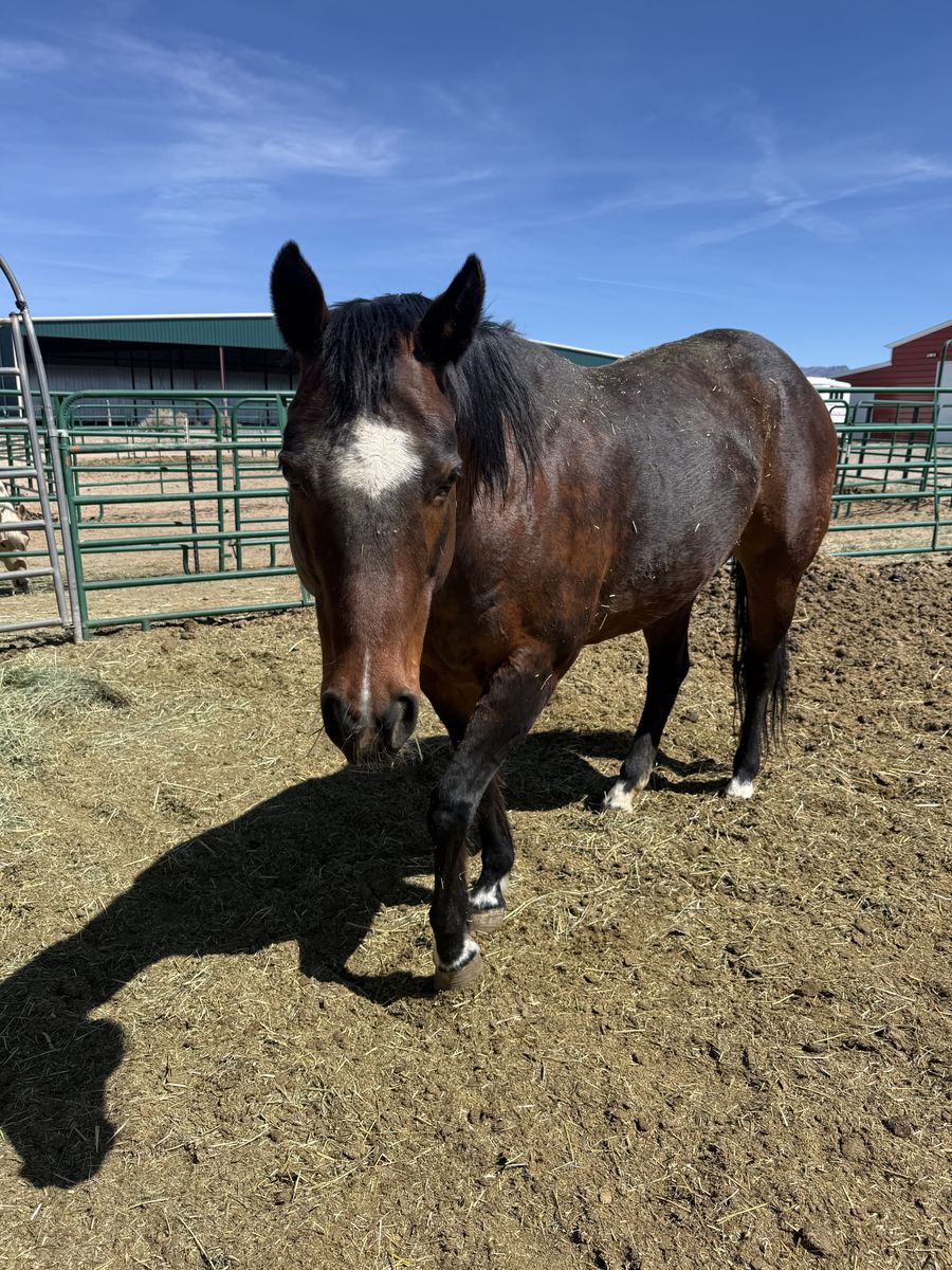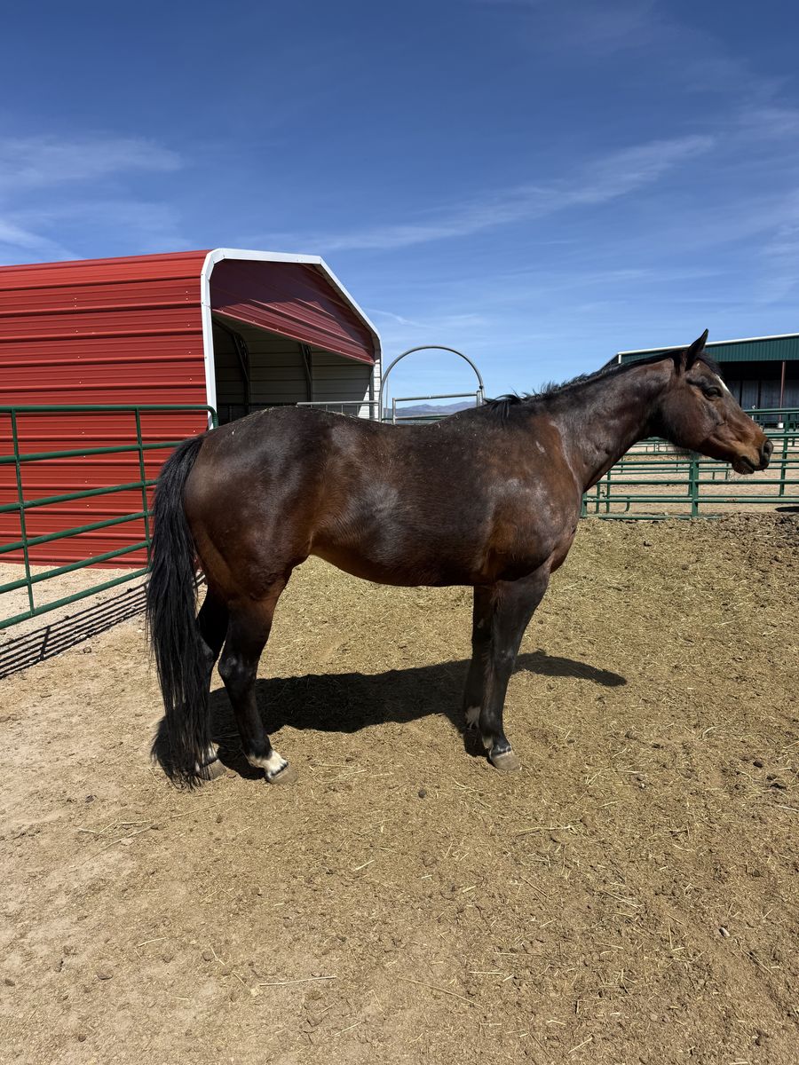 Sweetie is as easy as they come. She is a bay but has some dapple to her. She has only been used as a broodmare and is the best mom. She also lets you handle her babies as soon as they hit they ground. We are moving and have to downsize. That's the only reason we are selling her. She loads, trims and meets you at the gate to be caught. She has spent most of her life on pasture. Really great mare who has beautiful babies. Very friendly as you can tell by the photos.