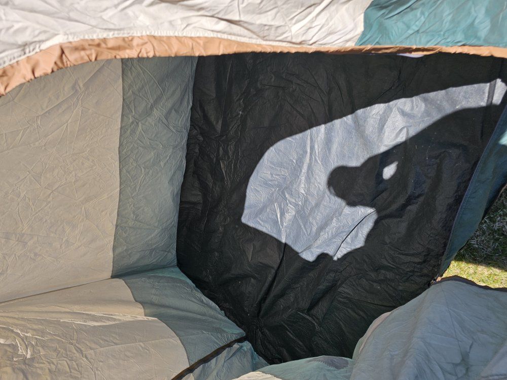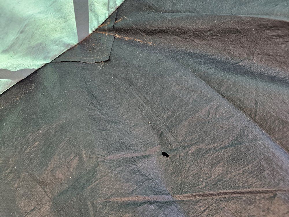 VenmoCamping tent. All poles and stakes included. Poles are not bent. A couple of small holes in the bottom.