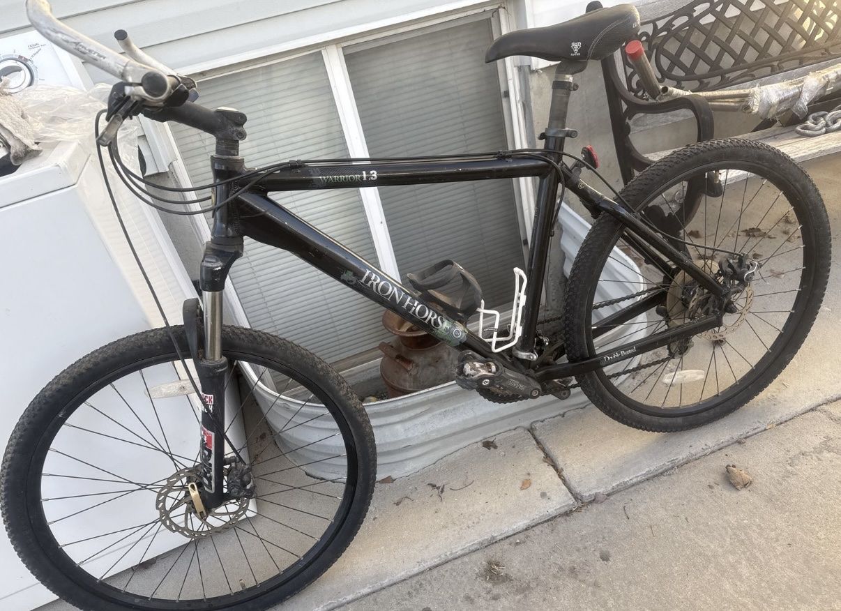 This Bike is still in good shape still in good condition both tires hold air , tire treads are still good, pedals are good, chain is good , handlebars are good , aluminum frame is still solid and has no cracks, brakes work great and shifters work great , 8x3 , 24 speed , Front suspension works great