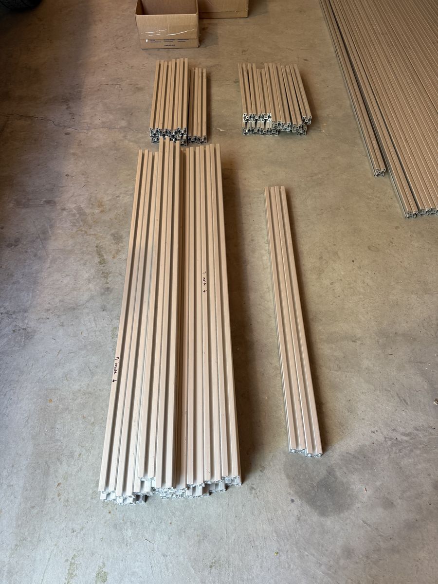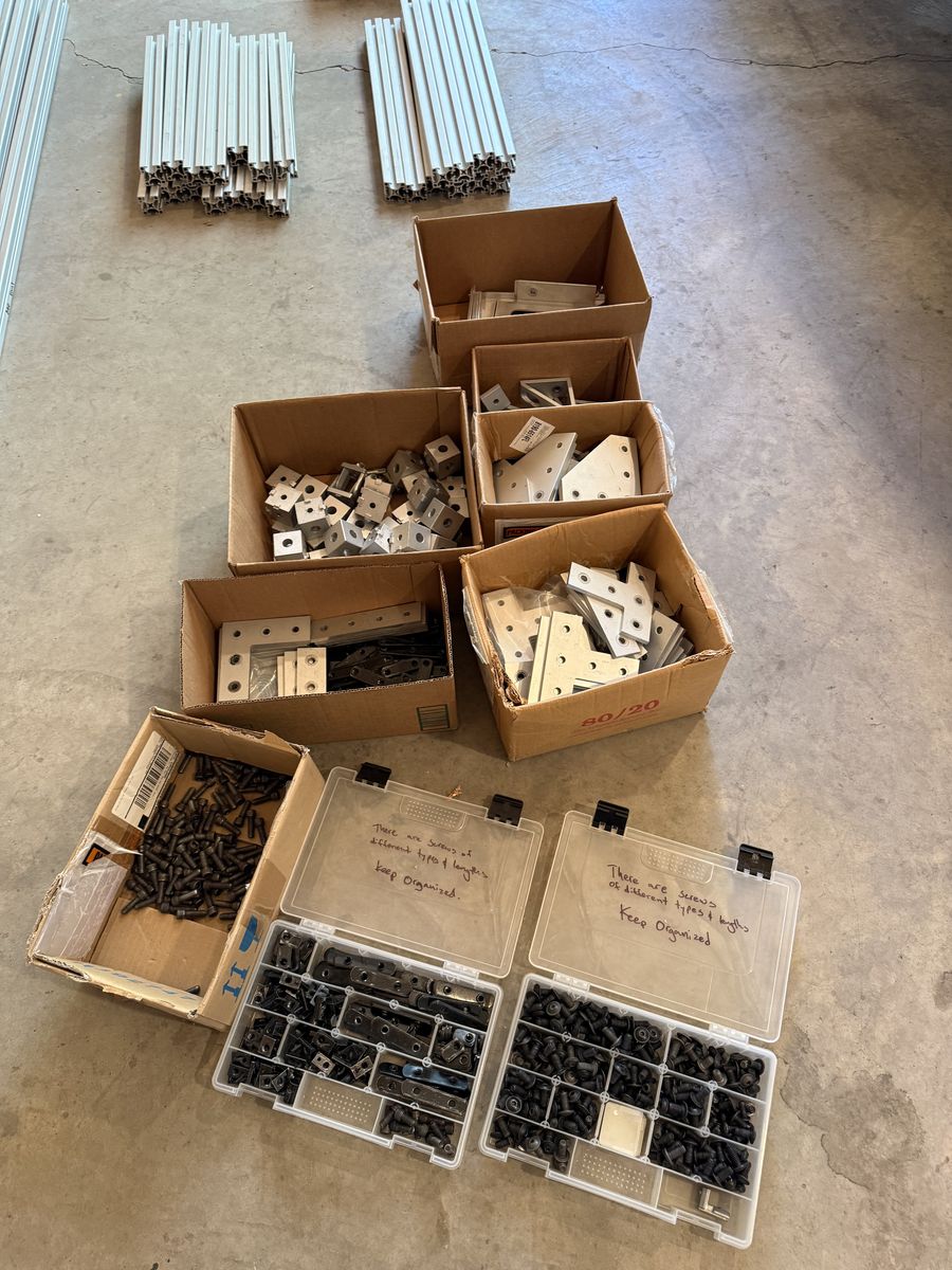 VenmoMisc. 1.5 in x 1.5 in 80/20 aluminum pieces. 16 units of 8 ft length, 26 units of 4 ft lengths. Misc connector hardware and screws. Good for building shop fixtures and benches.