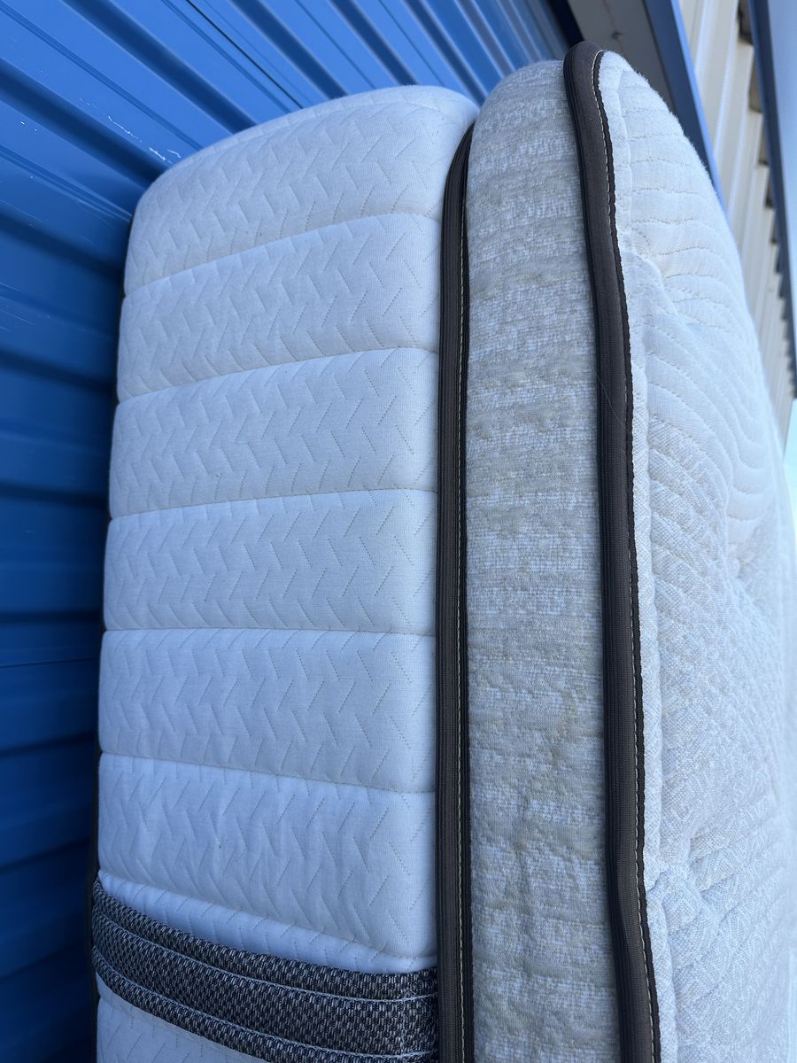 Check out this high end luxury 15" California king Kingsdown mattress. Overall, it is in great condition. There are some noticeable signs of imperfections,a light water stain on the front, some signs of use, etc.