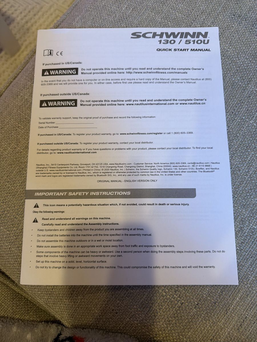 This is a New Fully Assembled Shwinn Fitness #130 Upright Bike Please check out photos and information in Photos and schwinnfitness.com