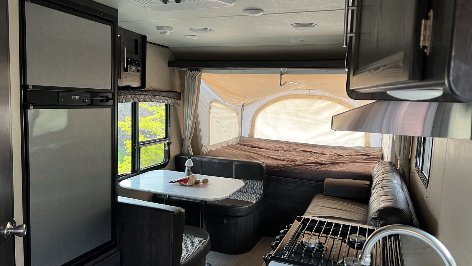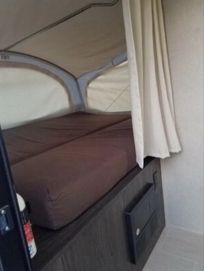This has been a great camper - easy to haul and maneuver with an SUV. I’ve had this camper for three years as a single mother, and it has been very simple to maintain and winterize. It is still in great shape, all canvas is intact, roof was resealed last year, no water leaks or damage. Kitchen faucet was upgraded last year (not in pictures) with a pulldown sprayer. Books for $13,500 without the equalizer hitch… if you would like the hitch included, the price will be $14,000.