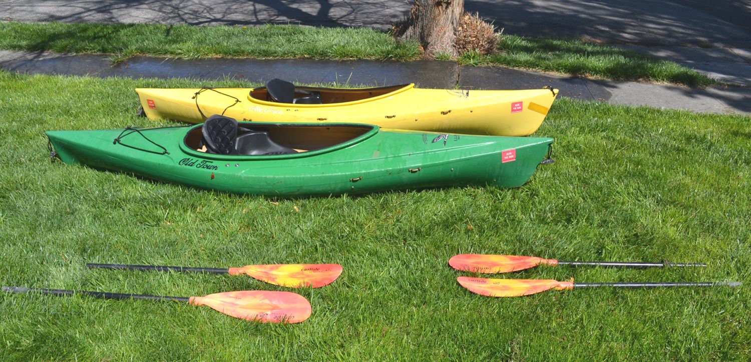 My old Kayaks from years ago. Used, but they still float. Paddles included. There are two Old-Town Kayaks. $100.00 each. Message me for more information. I live in the Sugarhouse area. Best offers considered.
