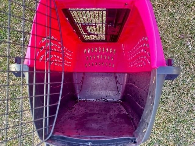 Open top Dog kennel carrier by Petmate. Fits pets up to 13.5" tall, 15-20 lbs. Lhasa Apsos, Pugs, Cairn Terriers and Westies. Good condition. Dimensions: 24"L x 16.7"W. x 14.5"H.