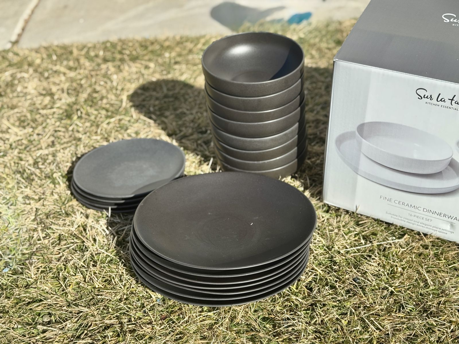 Elevate your table with this minimalist, matte charcoal dinnerware. Crafted from fine ceramic, this set features a space-saving, stackable design that’s as functional as it is stylish.
