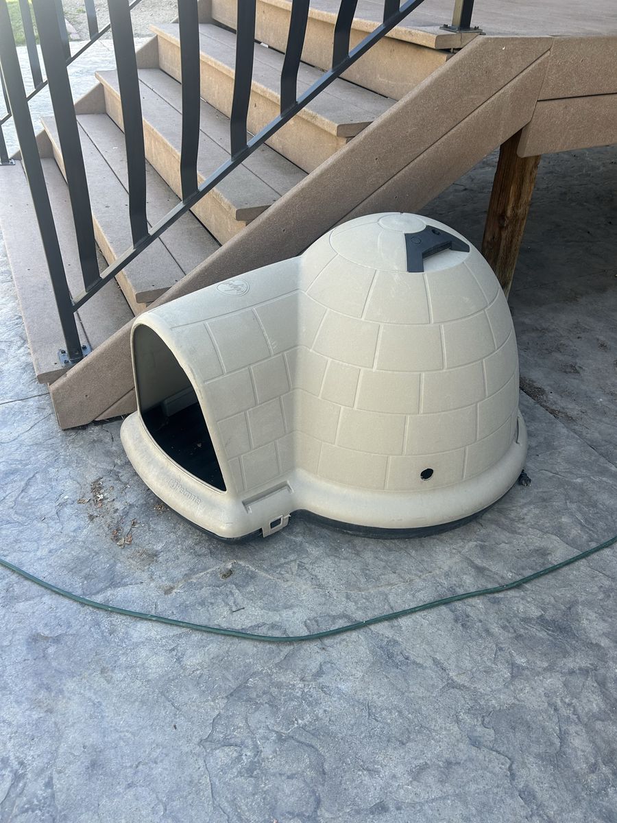 ApplePayDog house for small dog. Comes with heat pad that plugs in.