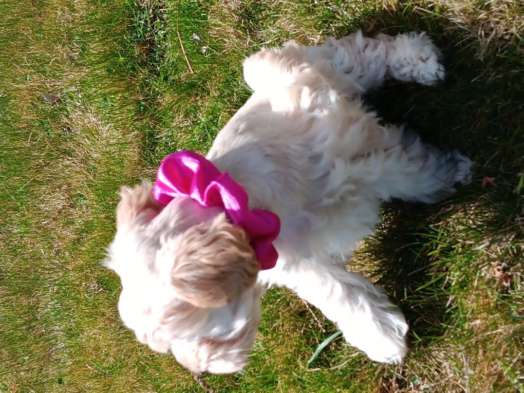 born feb 10th, Micro-chip also vet check,utd shots and worming and a 5 year health guarantee she comes with harness and leash and a goodie bag with toys ect.