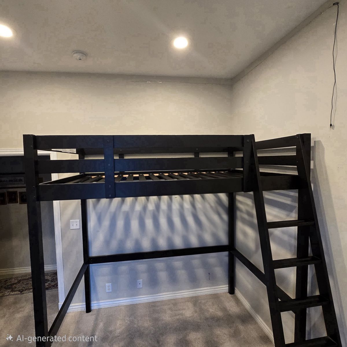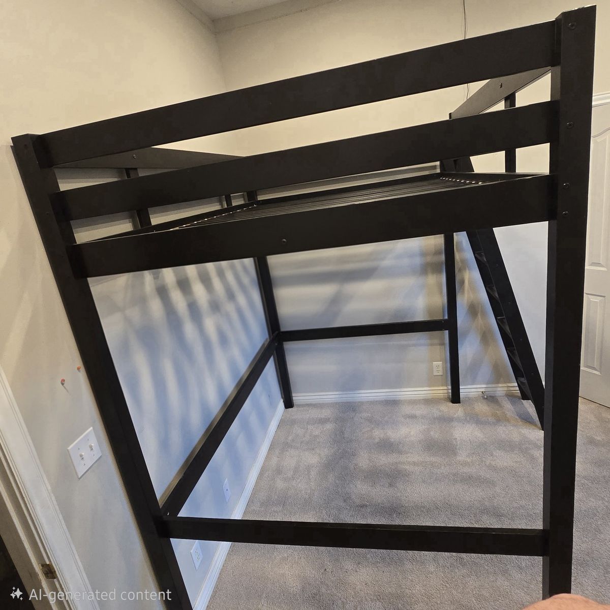 Details: Full size (fits standard mattress) Solid wood frame (very sturdy) Black finish Ladder can be installed on either side