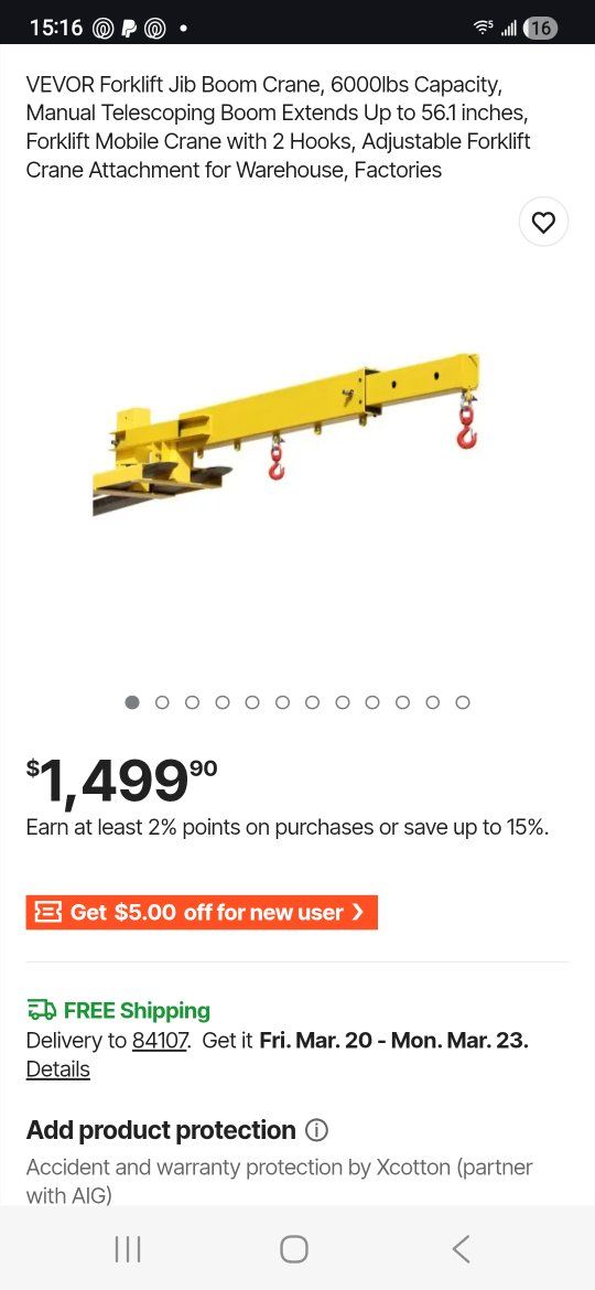 From manufacturer: High Strength Load Capacity: Made from premium alloy steel and treated with advanced heat processing, this forklift jib boom crane provides exceptional strength and toughness. Stable and Secure: The dual-hook design effectively distributes the lifting pressure, enhancing stability and avoiding wobbling or tipping during operation. Therefore, the forklift jib boom ensures the security of the workers. Multi-Position Adjustment: you can easily adjust the boom length of the forklift mobile crane (up to 56.1 inches) and load capacity (up to 6000 lbs) based on actual needs, enabling precise and efficient lifting operations.