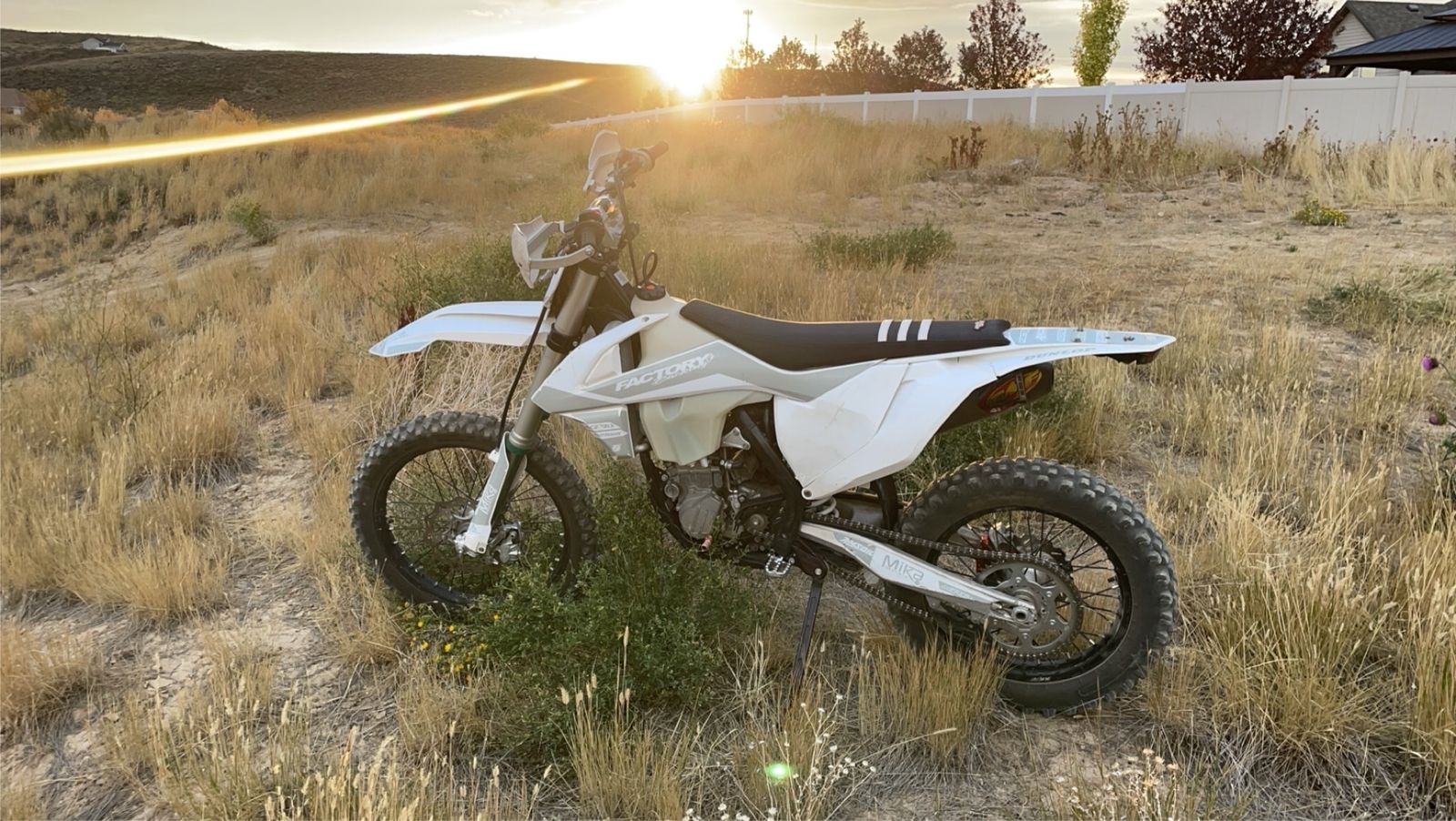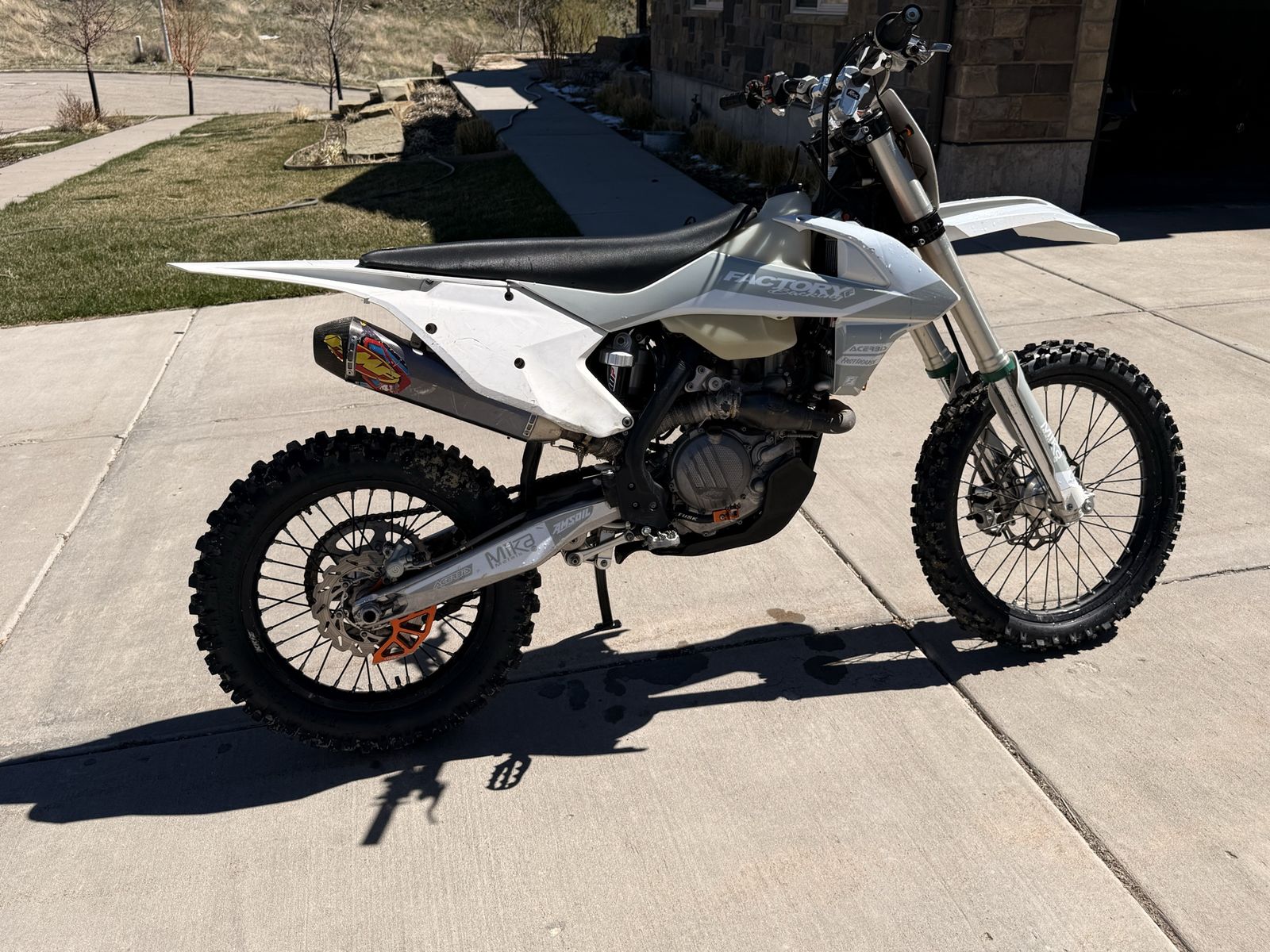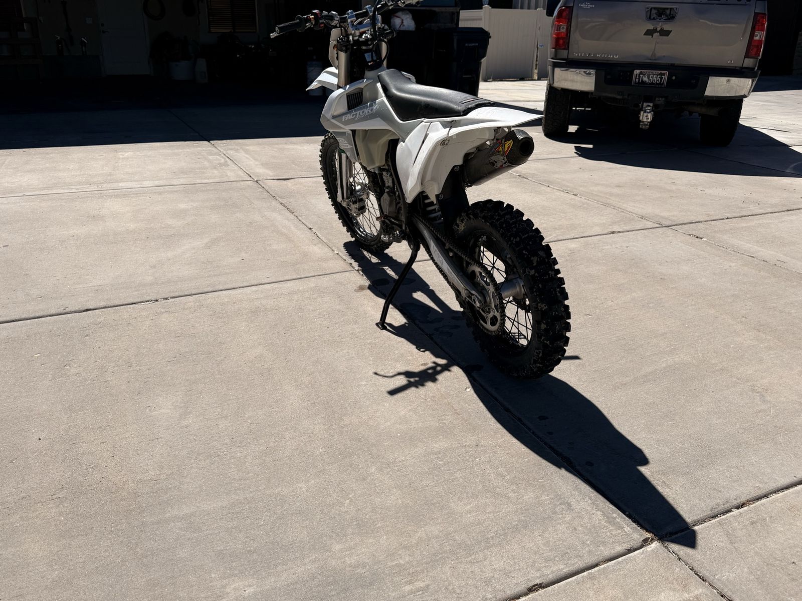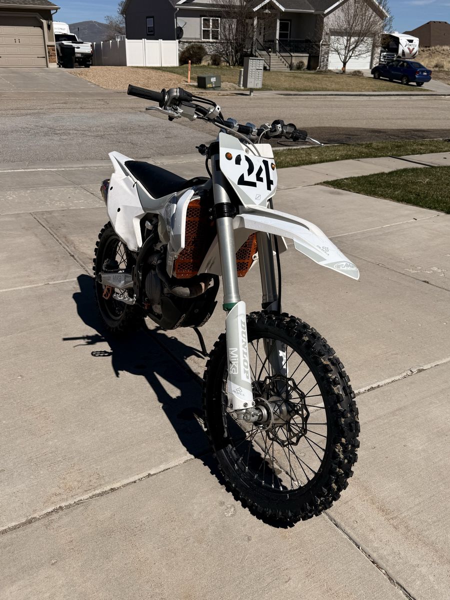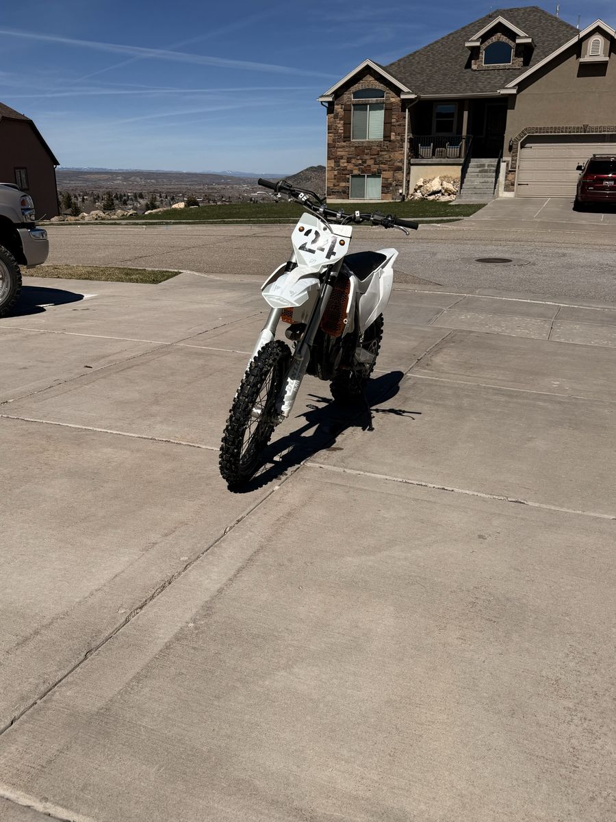 2017 KTM 450 This bike comes with lots of additions such as Full FMF titanium exhaust Billet radiator guards/braces Fast way kickstand Bar risers Full wrap around hand guards Upgraded rear spring (bike does sit taller) also comes with original spring Upgraded foot pegs with a bigger platform Upgraded shift and rear brake lever A key switch that turns off all electronics A fan for the hot days Needs new sensor and fans will work fine Brand new set of tires Oil and coolant change 1 short ride ago Plastics have minor scratches on them