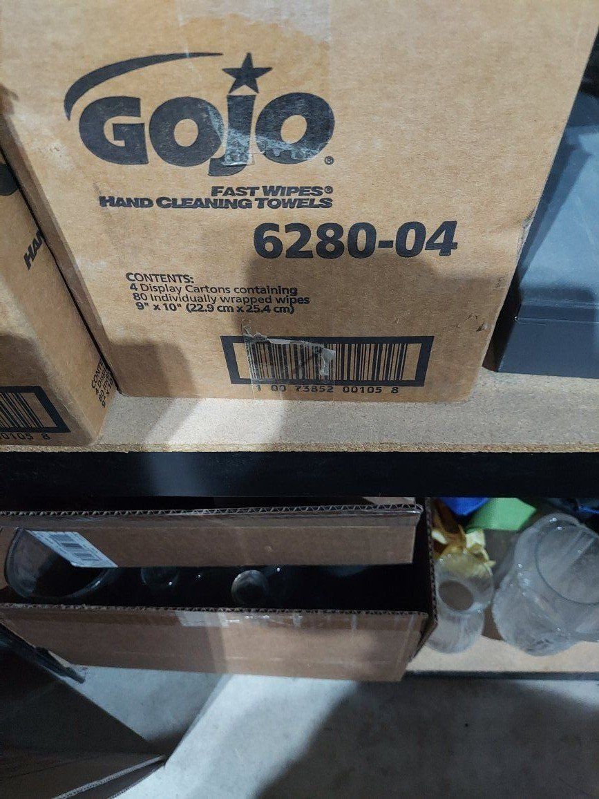 Gojo Fast Wpies Hand Cleaning Towel. These wipes are great for cleaning hands. They are moist and smell great. Great for small cleanups. 80 individual wrapped towels per box. I have 7 boxes.