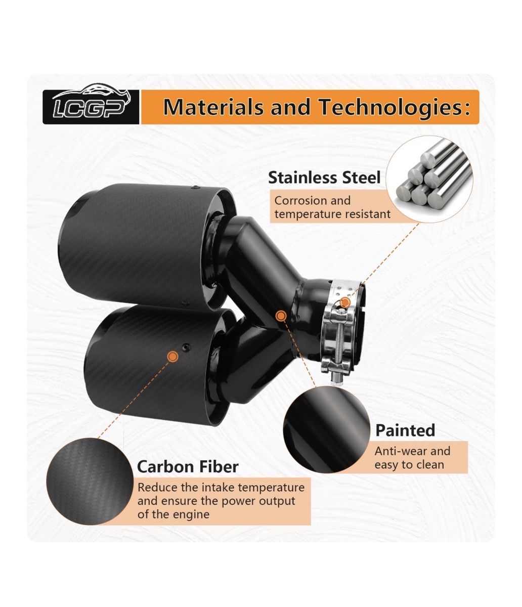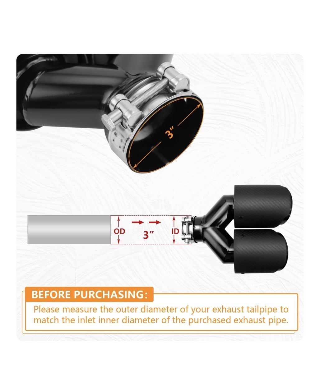 VenmoLCGP 2 Pack Carbon Fiber Exhaust Tip 3" Inlet to Dual 3.5" Outlet 9.8" Long Black Stainless Steel Y Pipe Tailpipe tip Brand New