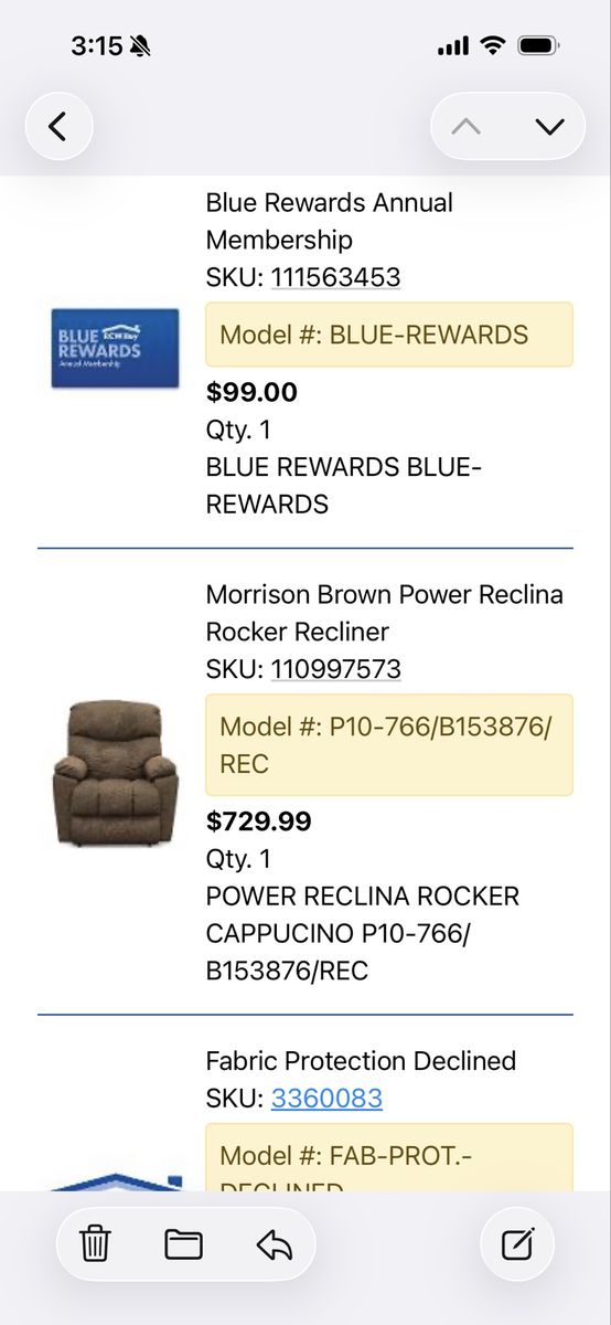 Photos: included is a picture of the invoice to show how much I spent on these items, as well as a generic photo of a similar chair so that you can see the color.