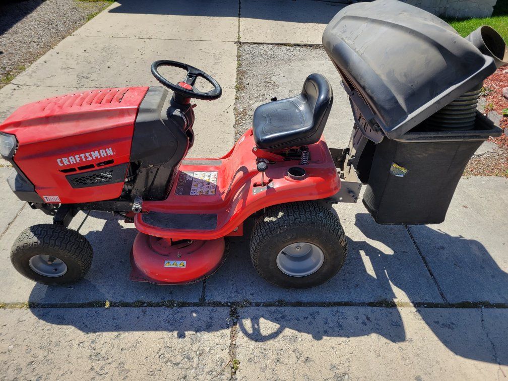 Venmocraftsman t100 riding lawn mower with collection bin. links below. $2700 brand new with the collection bin. she runs great, new battery last year, fires right up once primed. drives great. tires hold air, but front left need to be refilled occasionally, slow leak. 3-4 seasons old. I'll even fill the tank with ethanol free if you buy it.