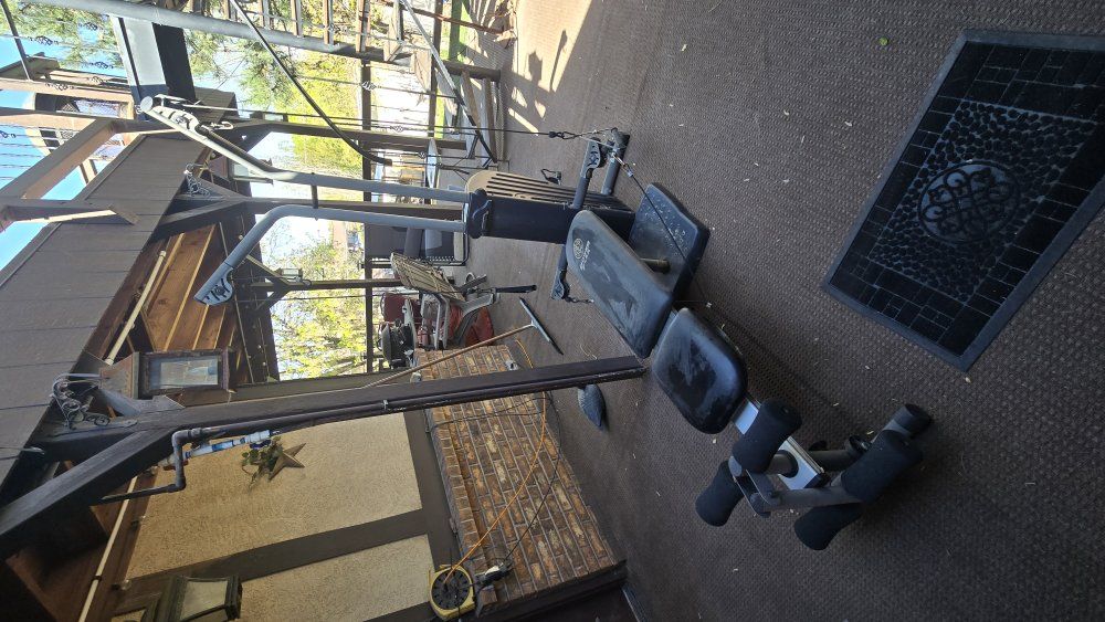 still in okay working condition. cables and pulleys still good. its just a little bit weathered since it was sitting outside.