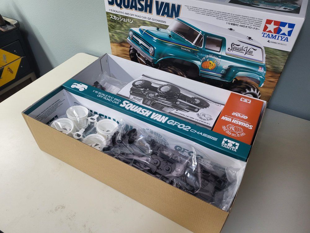 VenmoNew Squash Van kit in opened box, unbuilt, all parts bags still sealed. This kit has an included speed control unit. Also included are new upgraded oil shocks, upgraded sealed ball bearings, 3 cans of new Tamiya polycarbonate spray, and a new in box steering servo. Will require your own radio, receiver, batteries, and charger. Price firm. However, I also have a new in box Black Edition Midnight Pumpkin with extras listed as well, and will consider in-person offers if you want to buy both kits. See my other listing for details.