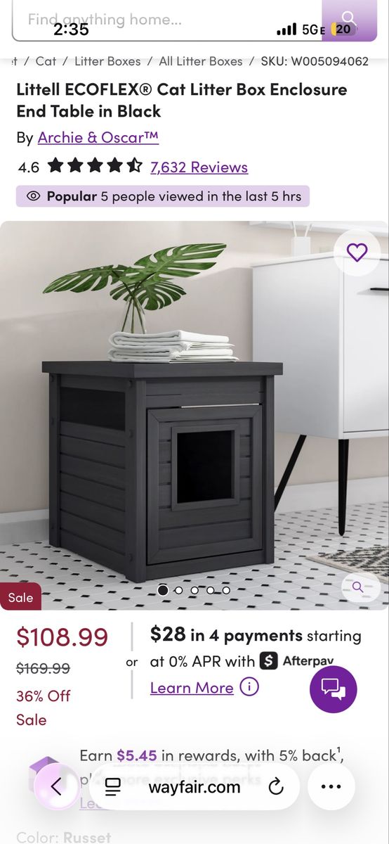 VenmoLightly used and throughly cleaned. My cat didn’t take to it so selling here. Great way to conceal your litter box!