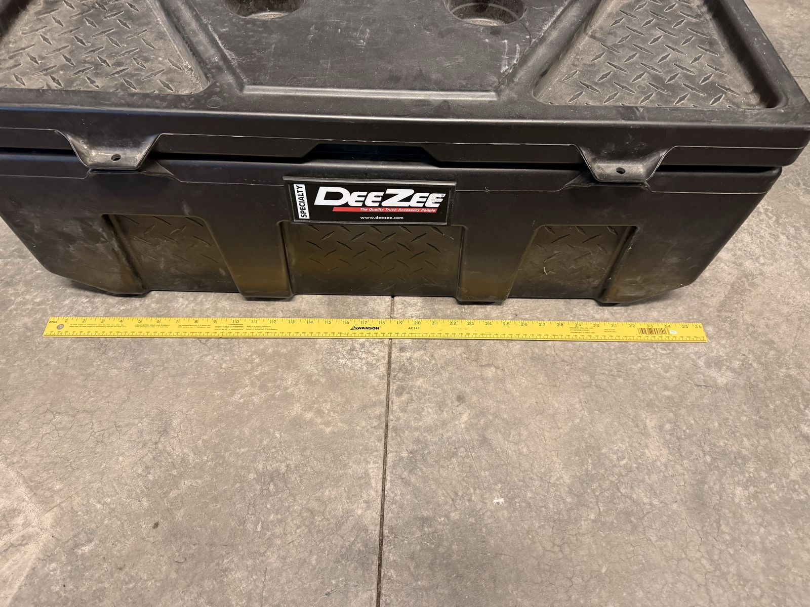 ApplePayDeeZee Truck Tool Box DZ6535P 35x14x13 Dee Zee tool box - plastic poly utility chest. Constructed of strong yet lightweight plastic. Built to add quick storage wherever you need it. Truck, trailer, boat, dorm room, garage, barn, workshop or anywhere else you can use storage. Molded cup holders on lid provide convenience. Foam gasket around lid helps makes box weather resistant. Built in locations on lid accept your pad lock for security (Pad locks not included).