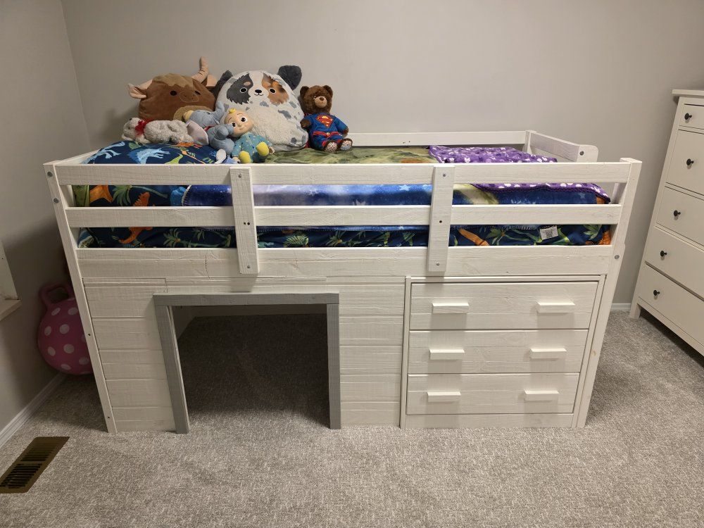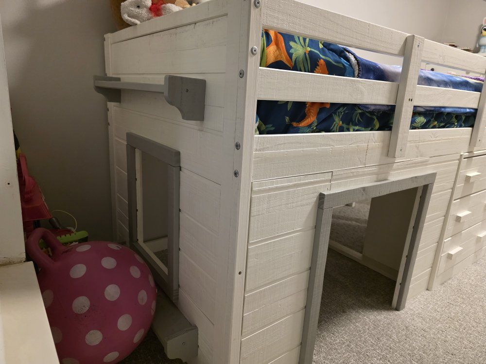 VenmoA cute bed that has been through 2 of our children. It has such a fun hideout, even making it fun to set up a bed in there and sleep under it! there are some scratches and wear and tear, but the drawers work great and a great structure.