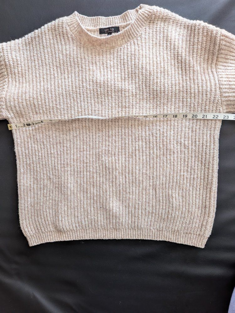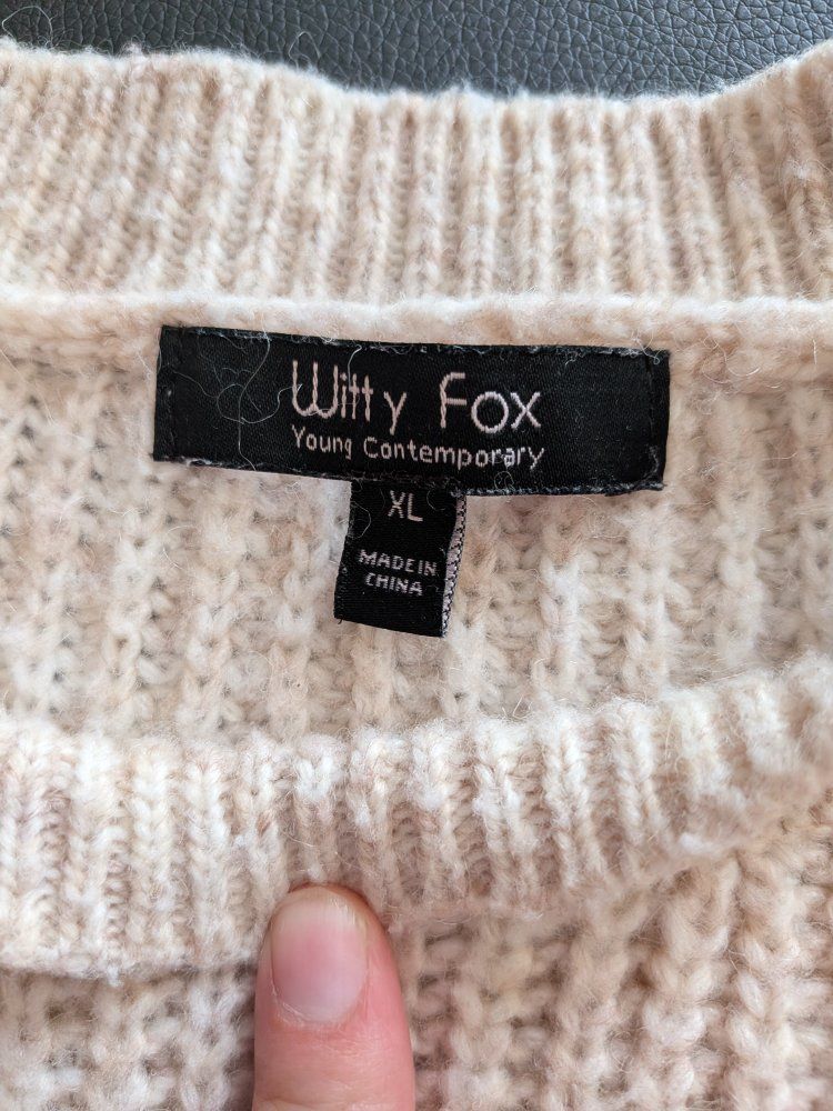 VenmoStylish Witty Fox sweater. This beige ribbed knit sweater has cool fringe sleeves. Size XL. Measures about 23 inches across the chest and 24 inches long. Super comfy.