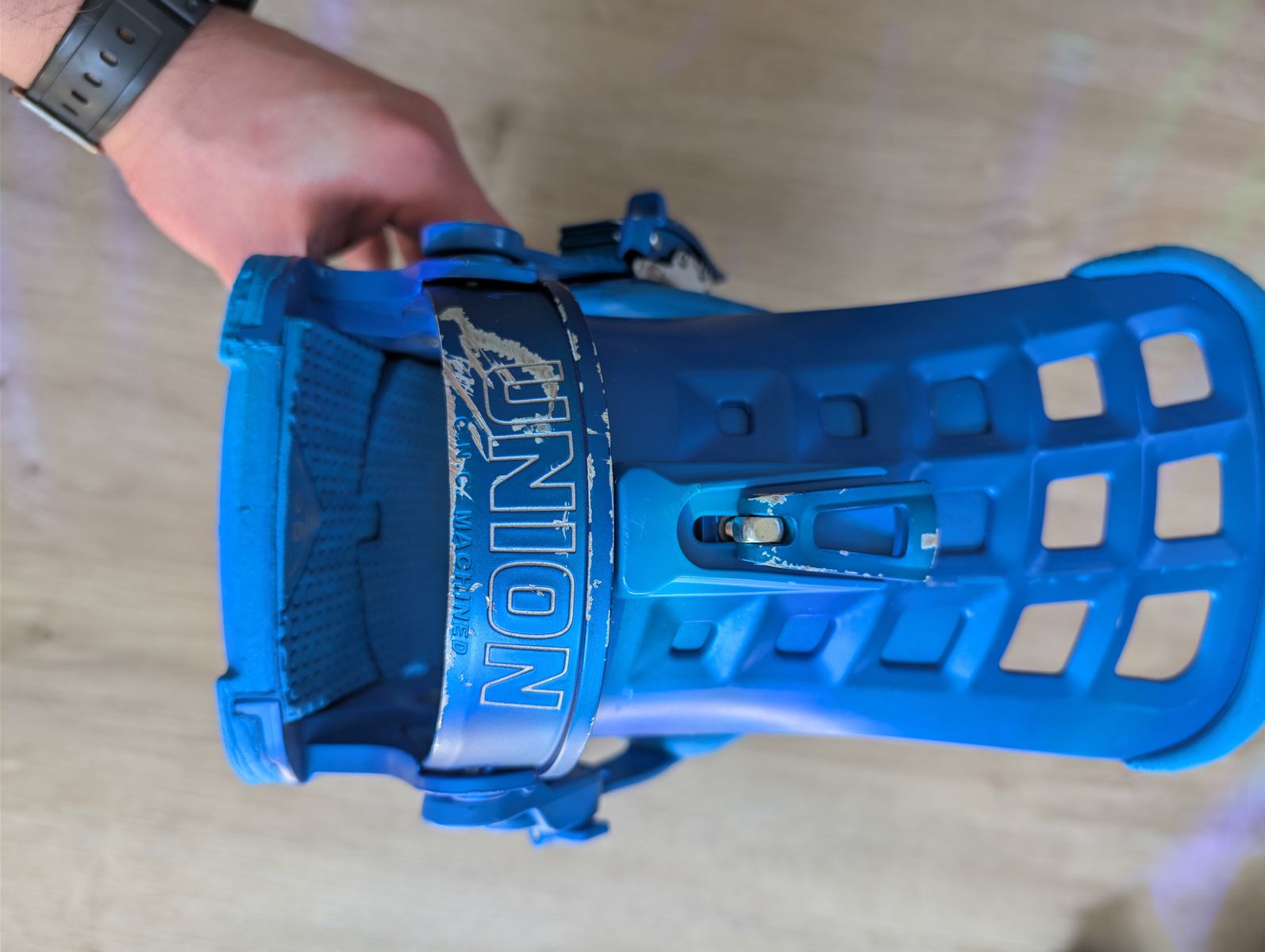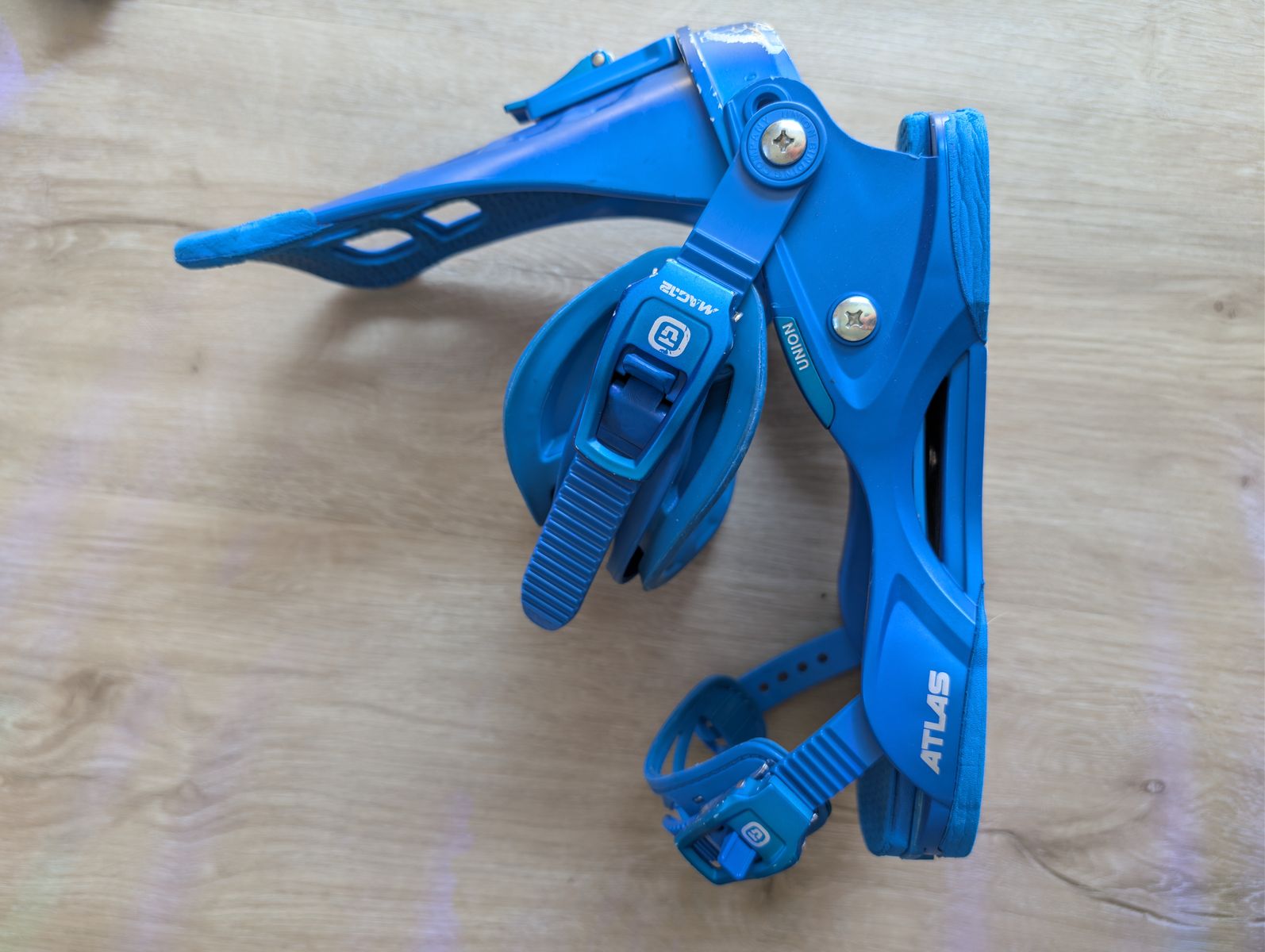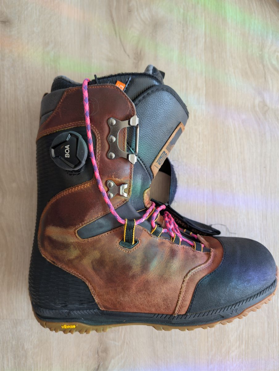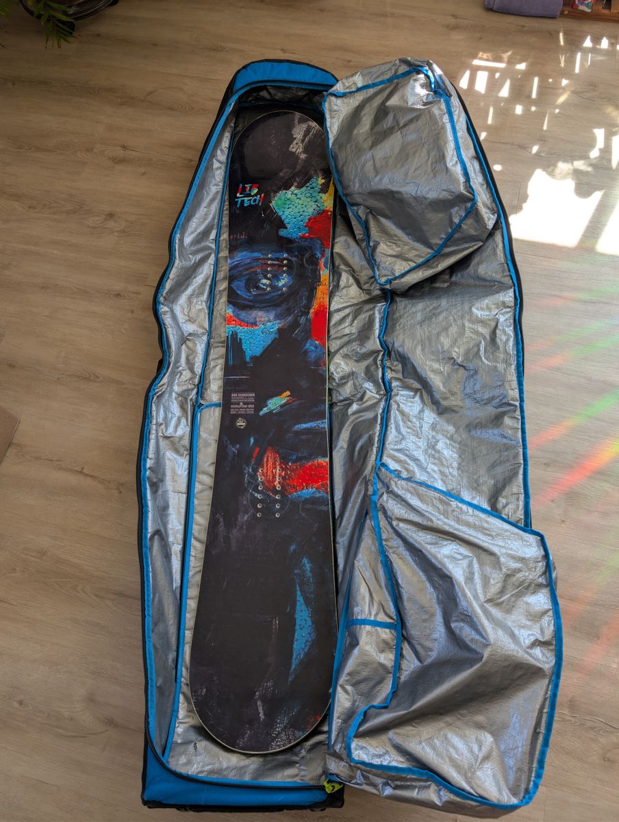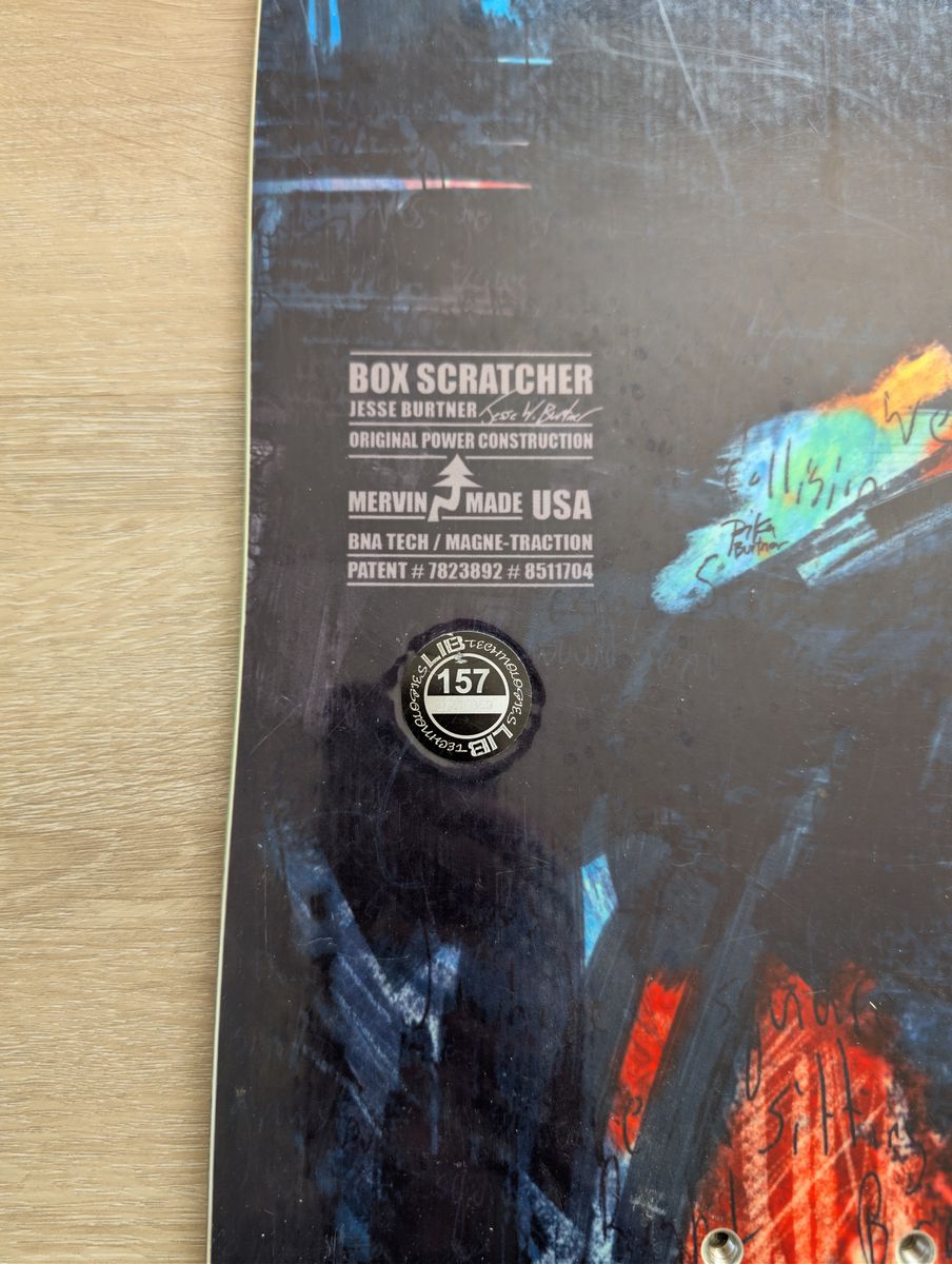 It's a Libtech Box Scratcher 157cm with a set of blue Union Atlas bindings in size L. I've also got a pair of Rome Guide boots in size 10.5 and a Dakine roller bag to hold it all. The board is in good shape, no major scratches/coreshots in the base and the edges and top sheet are in good condition. The bindings have superficial scratches on the heel cup, but straps/high backs/bases are all in good condition. The boots are in good shape, with very little wear on the soles.