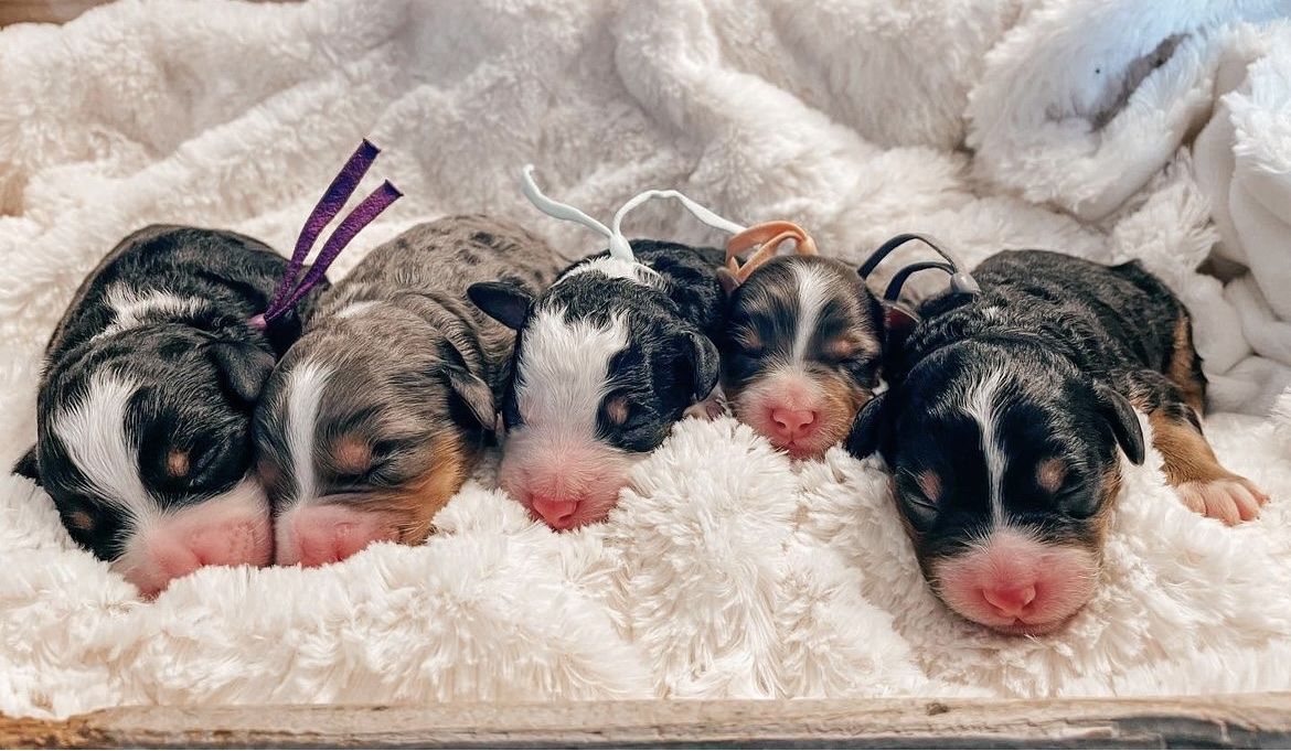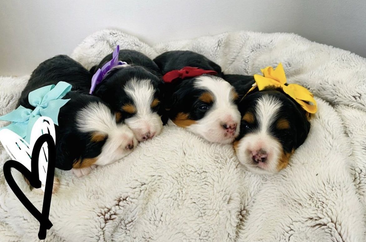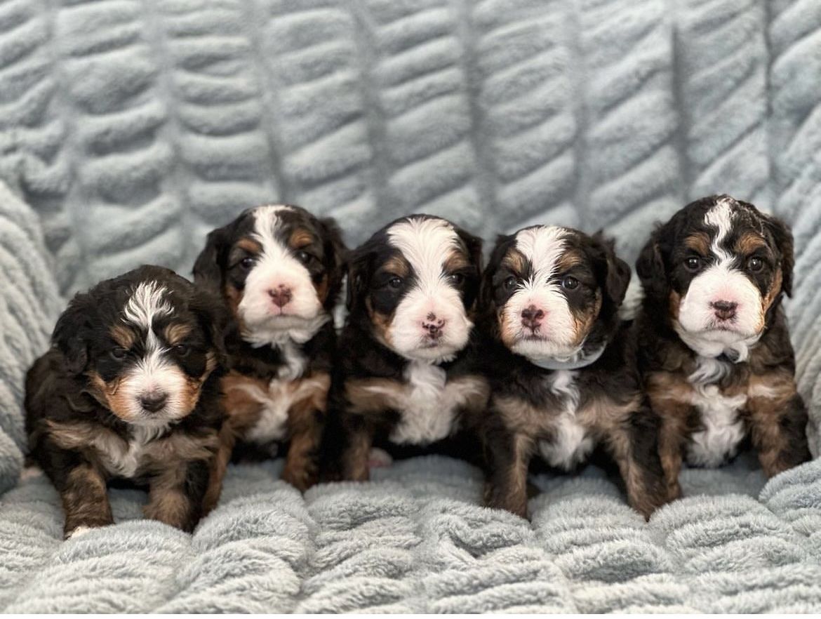 ApplePayGeorge is a Fully Furnished Hidden Phantom F2 Bernedoodle! He’s a proven stud. Whether you want those perfect tri colors, or red bernedoodles, he can create either! (See pics for a couple of George’s cute puppies)! He’s truly one of a kind. People adore his awesome temperament and personality. His color panel is: