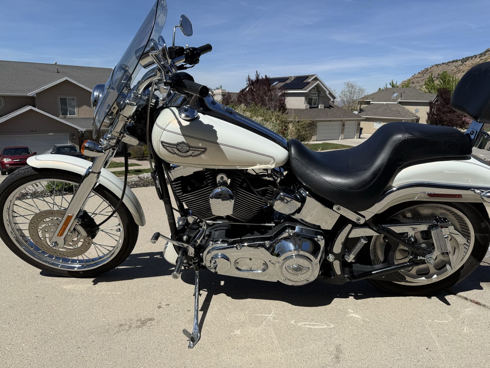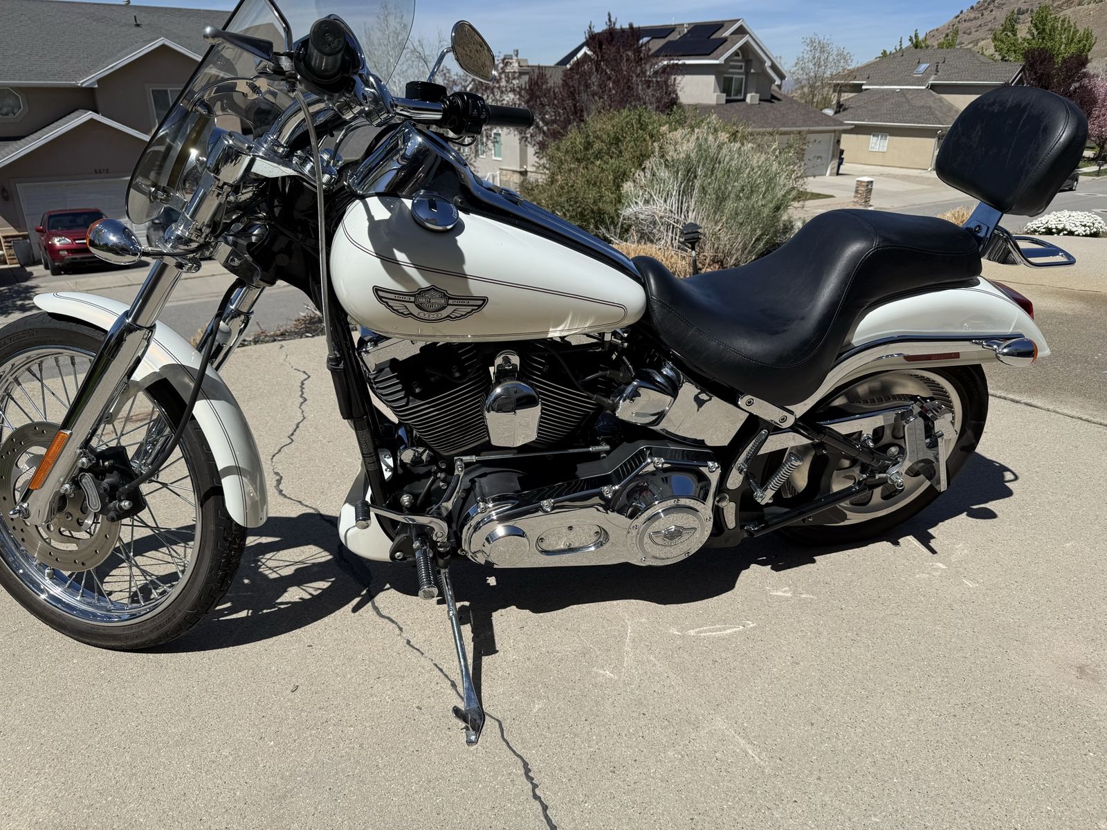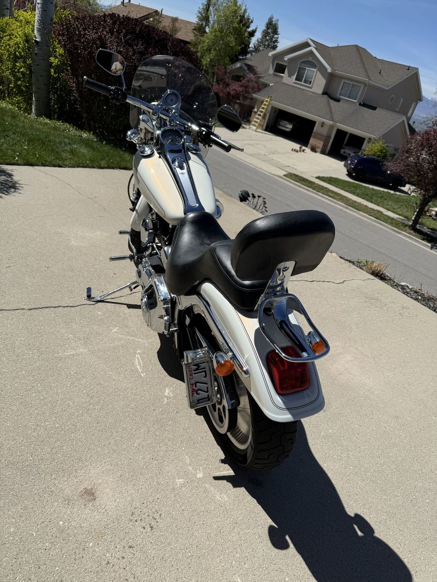 Description: 2003 Harley-Davidson Deuce Softail – 100th Anniversary Edition in pearl white. This is a super clean, low-mileage bike that’s been well cared for and always garage kept.\