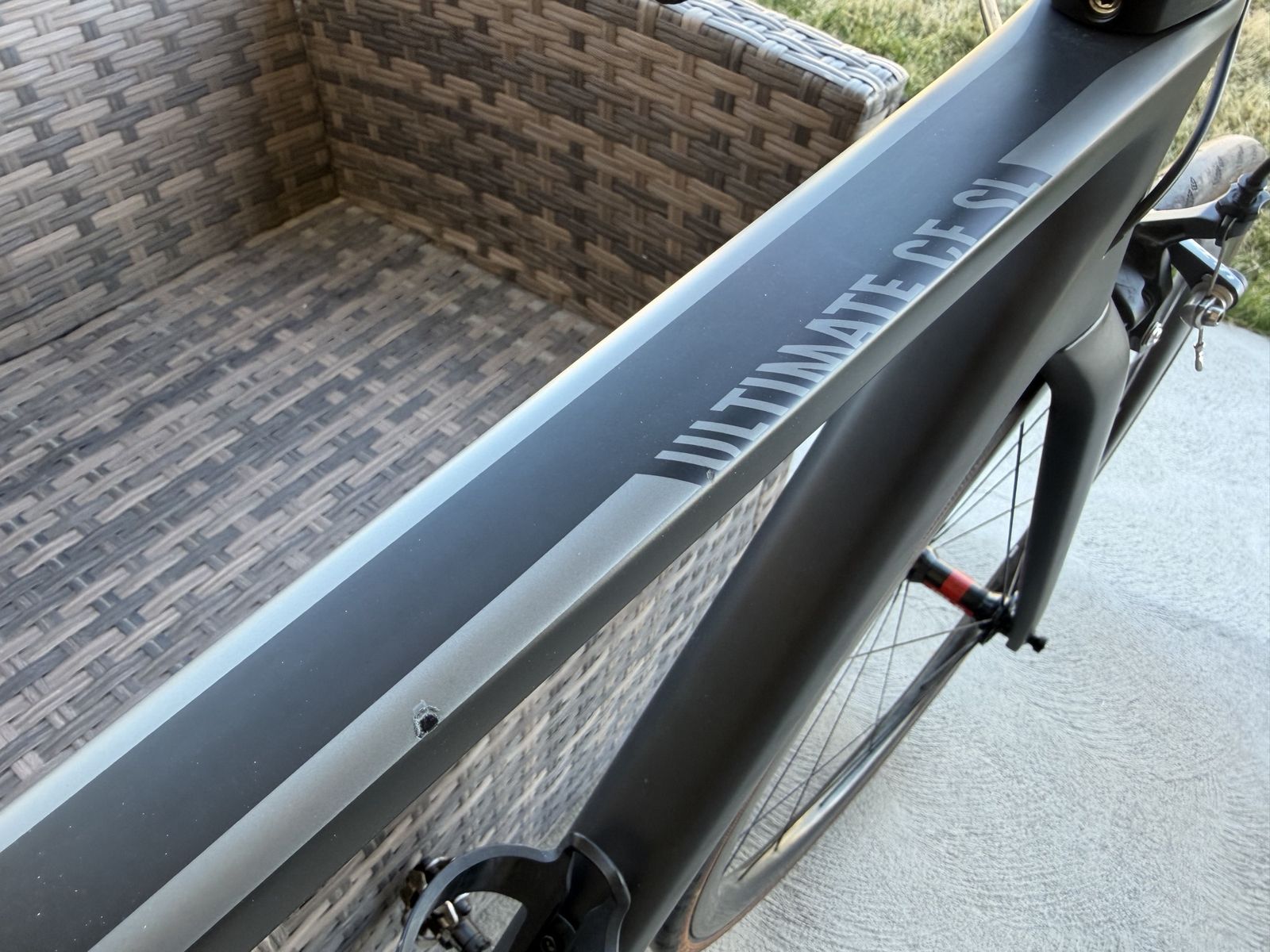 The bike is 2020/2021, and in great shape. The only cosmetic damage is a little chip on the top tube.