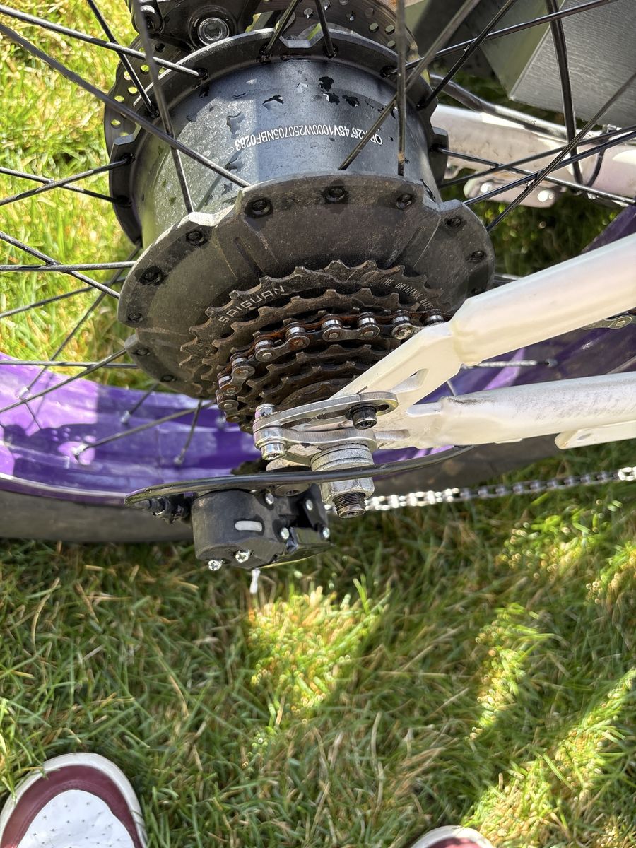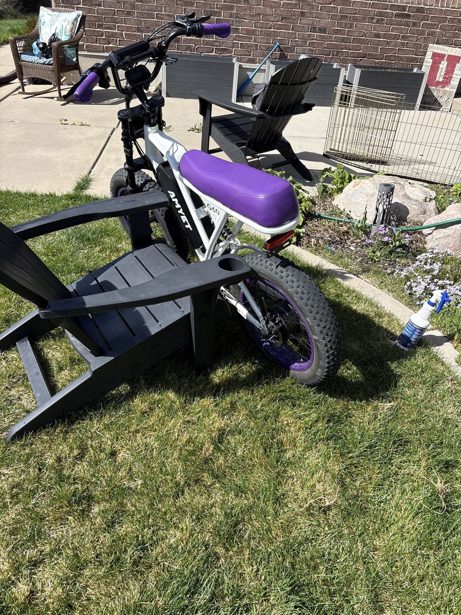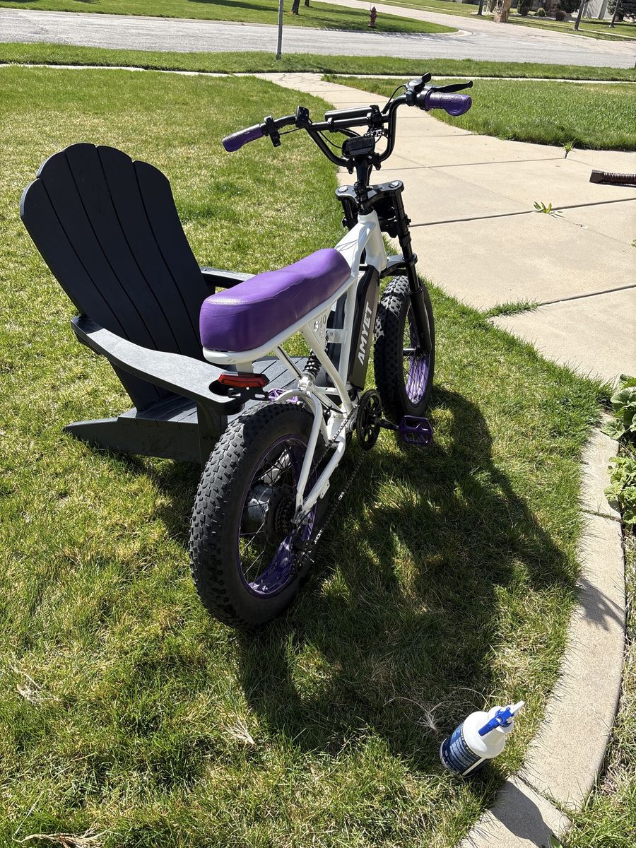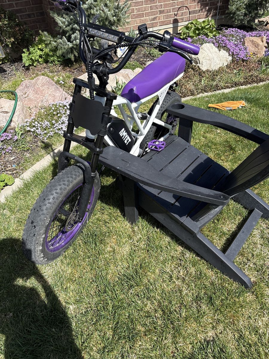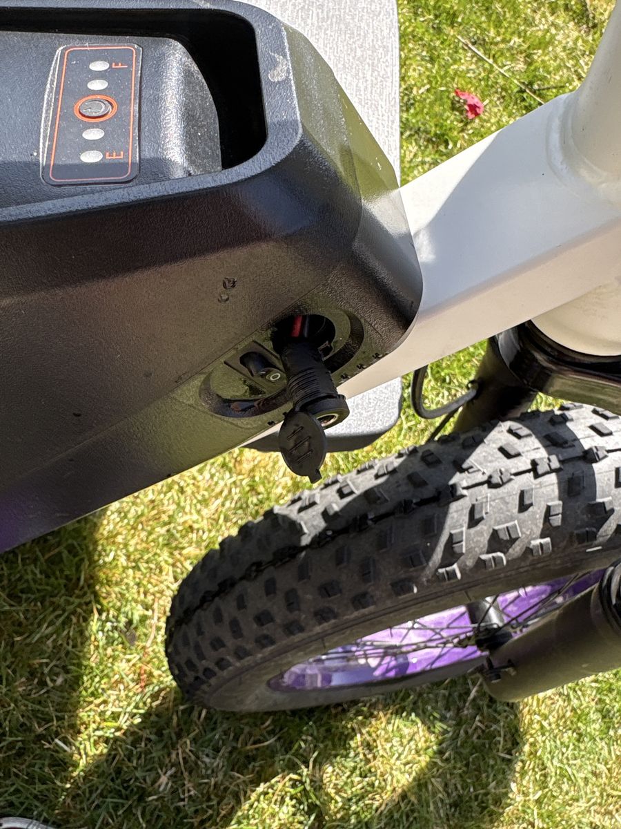 Nice e-bike, have added a couple of appealing mods, I have a suron plate, a light from Amazon and a small bag that comes with it. There are little to no damage, though where there is damage at when you plug it in the battery socket pops out chain is slightly rusted and it seems that there is oil spots along the E bike look dark black other than that it’s a great E bike it’s great for mobility for a case to go around the neighborhood. I would also love to trade this E bike for possibly a one wheel or other mobility. if it could have a little bit of cash on that, that would be even better in total shipping and the accessories I probably pay $1200. No kick stand.