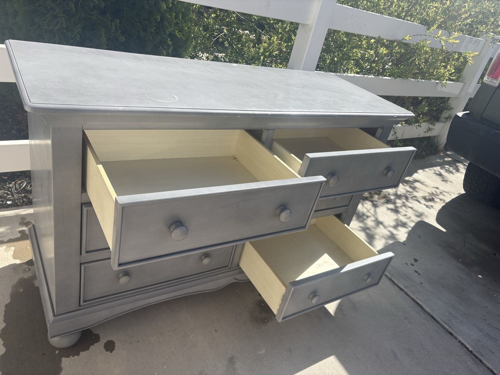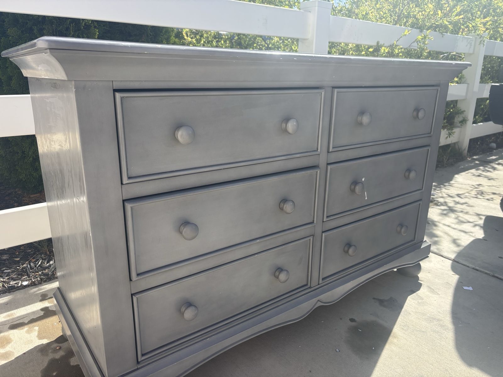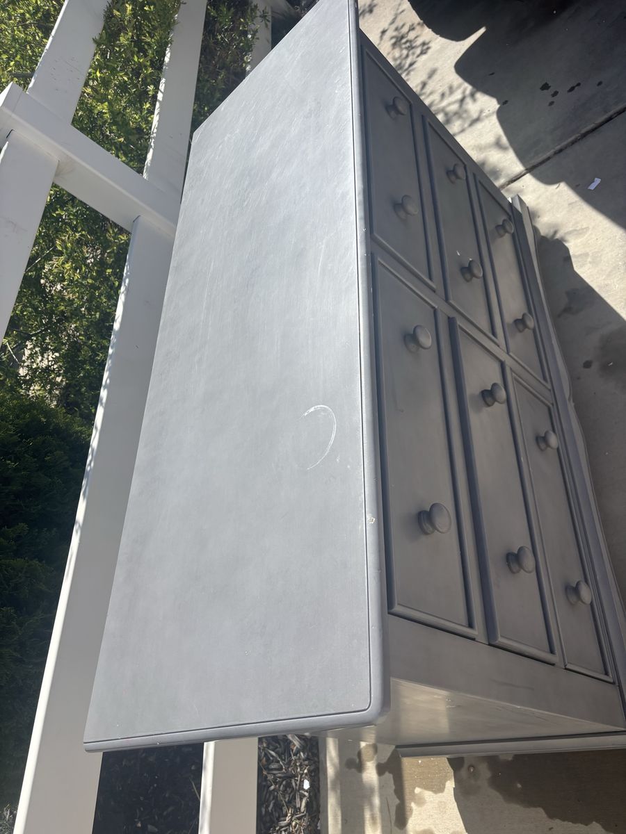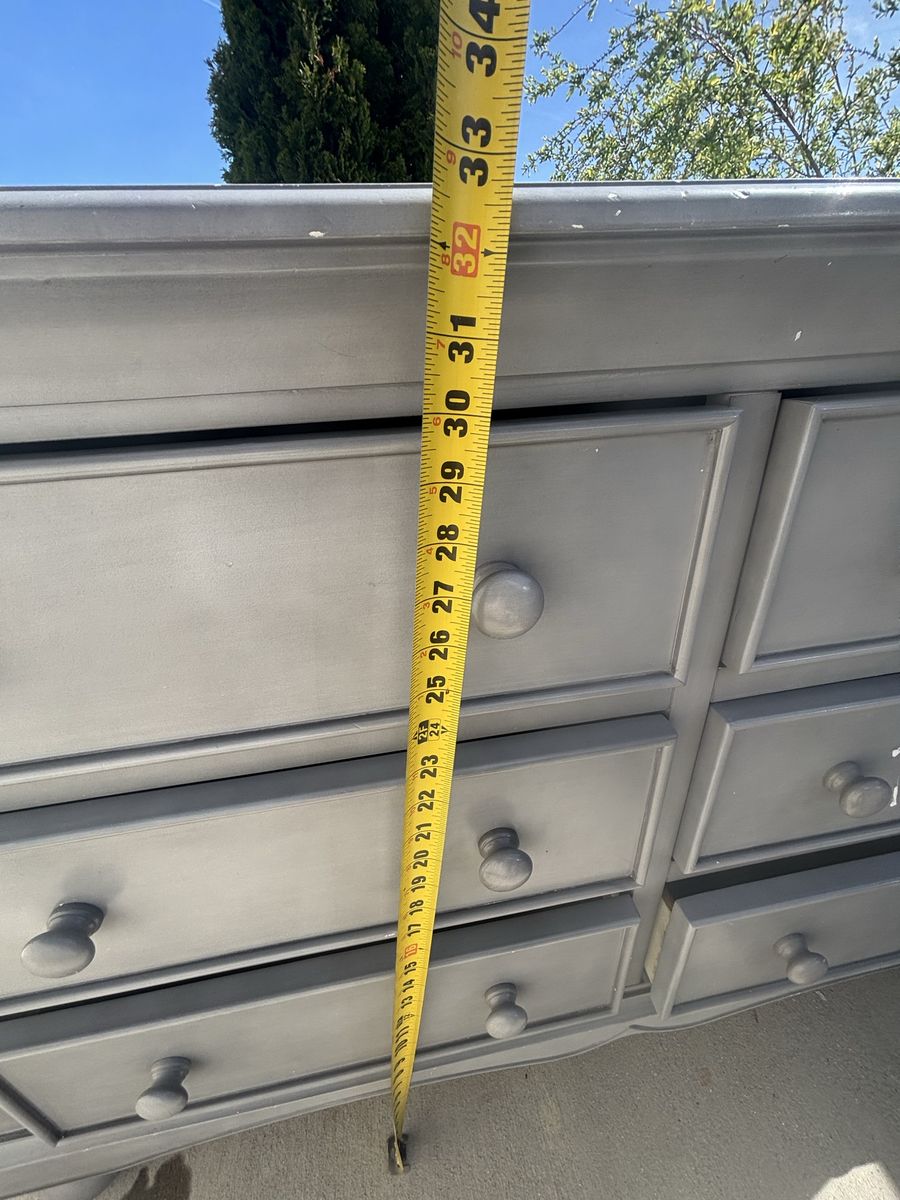 VenmoNice looking Dresser Light Gray color 6 drawers Some scratches but firm wood 52” long x 20” wide x 32 3/4 tall