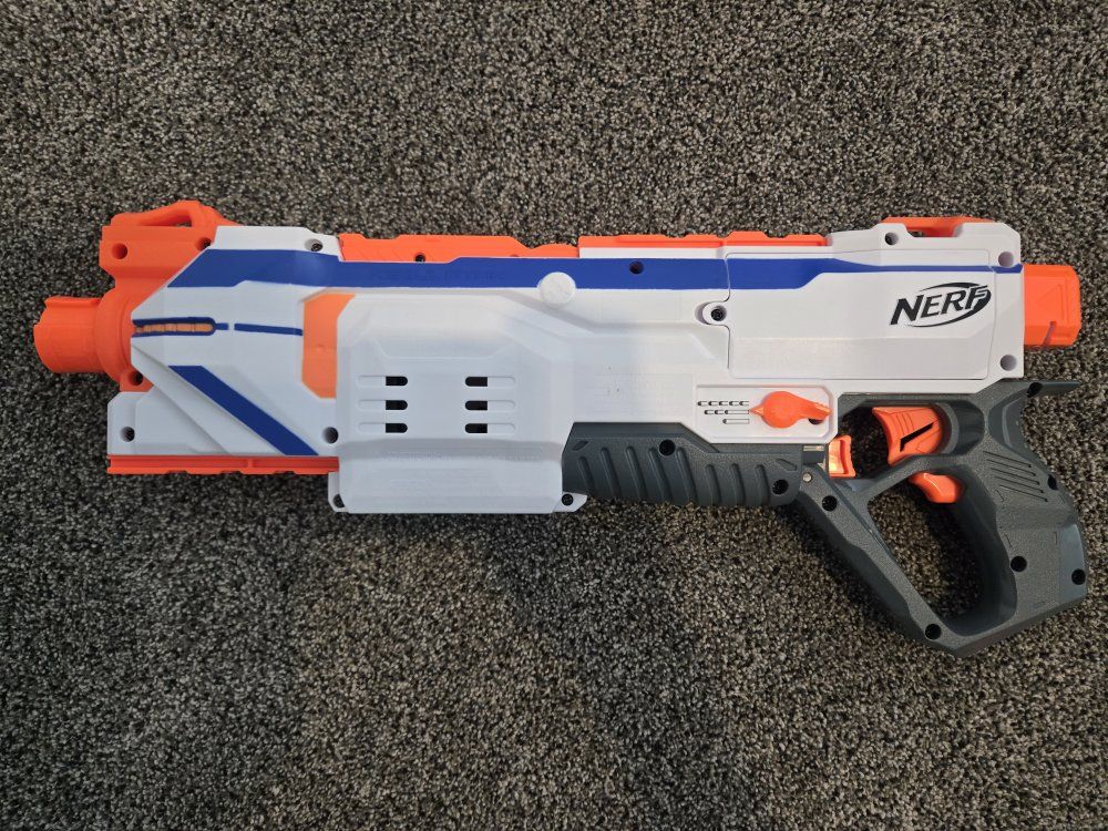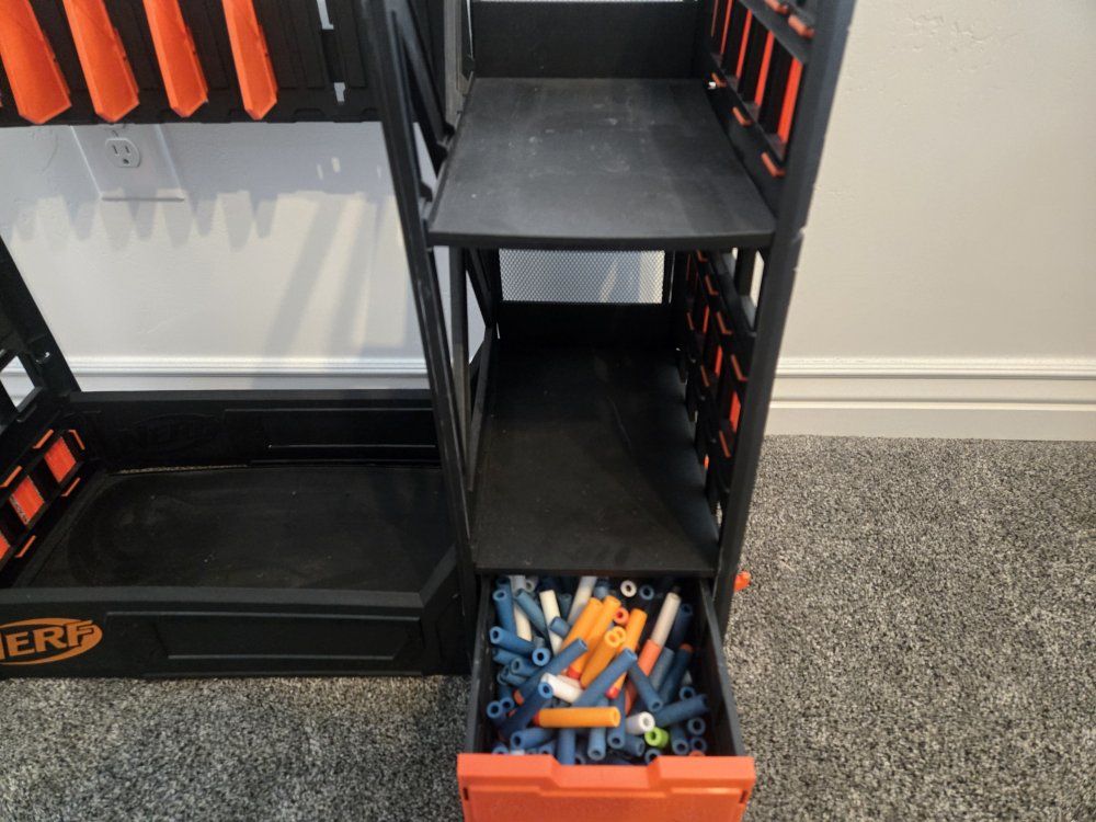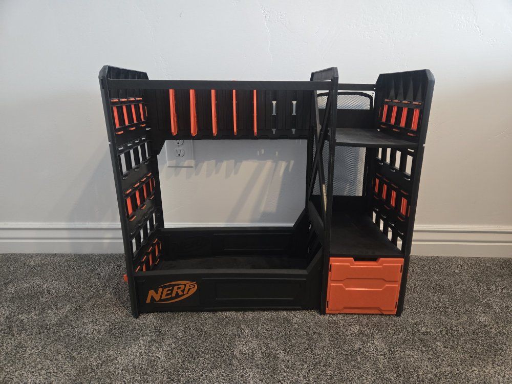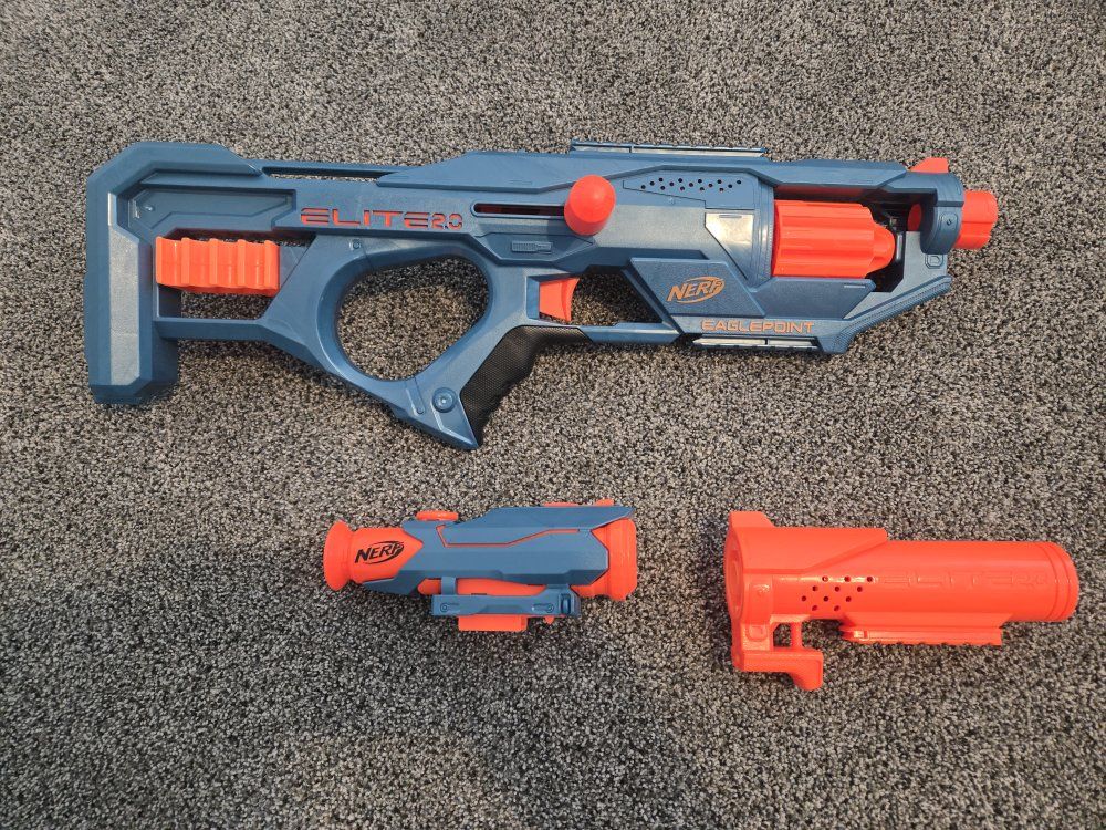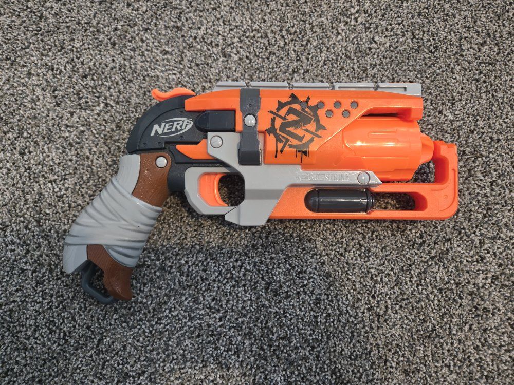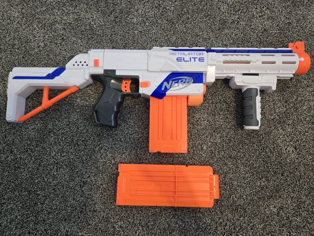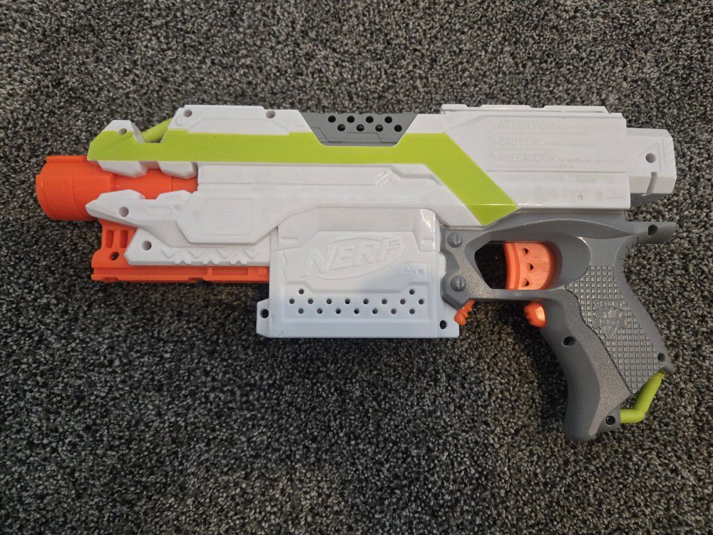 GooglePayPay full price for all or buy separately, prices for separate items listed below. -Nerf Elite 2.0 Eaglepoint: $15 -Nerf Modulus Stryfe: $20 -Nerf Elite Retaliator: $20 -Nerf Elite 2.0 Commander: $5 -Nerf Zombie Strike Hammershot: $15 -Nerf Hyper Fuel-20: $15(separately) / $25(together) -Nerf Regulator: $40 -Nerf 35 round drum: $10 -Nerf Modulus Tactical Light: $10 -Nerf Storage Rack: $40 Each Nerf gun comes with the included attachments out of box. All items work great, and are basically new as they were rarely used.