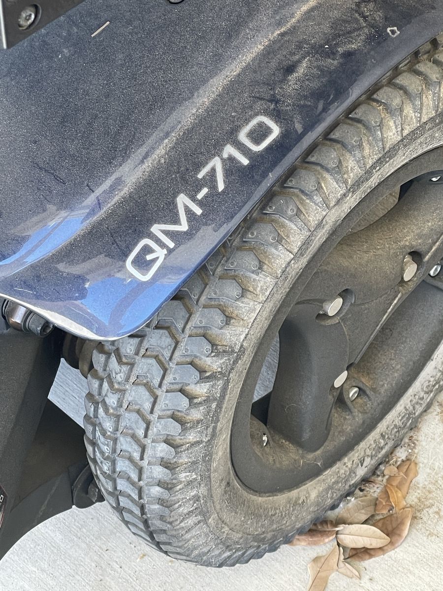The Quickie QM-710 is a high-performance, mid-wheel drive power wheelchair designed for luxury, stability, and versatility, featuring advanced SpiderTrac® 2.0 suspension and 4-pole motors for speeds up to 6 MPH. It is known for its tight 21–23.5 inch turning radius, power seat functions (tilt, recline, lift), and a 300–350 lb weight capacity.