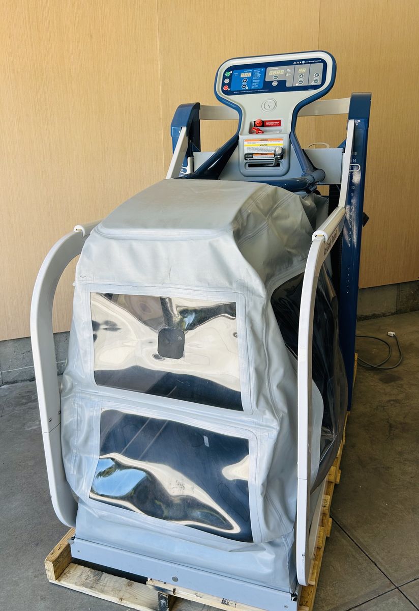 This AlterG treadmill is gently used and in great condition, perfect for rehab, low-impact workouts, or performance training. It lets you adjust your body weight to a chosen percentage (i.e. walk with 20% of your body weight), making walking or running far less painful and ideal for recovering from injuries to your legs, knees, or feet—and you can also set the incline for added training versatility. Reduce joint stress while maintaining your fitness routine or recovering safely. Ideal for athletes, clinics, or anyone looking to train smarter. Comes with 7 pair of Alter G Treadmill Shorts. These machines are $30k+ brand new.