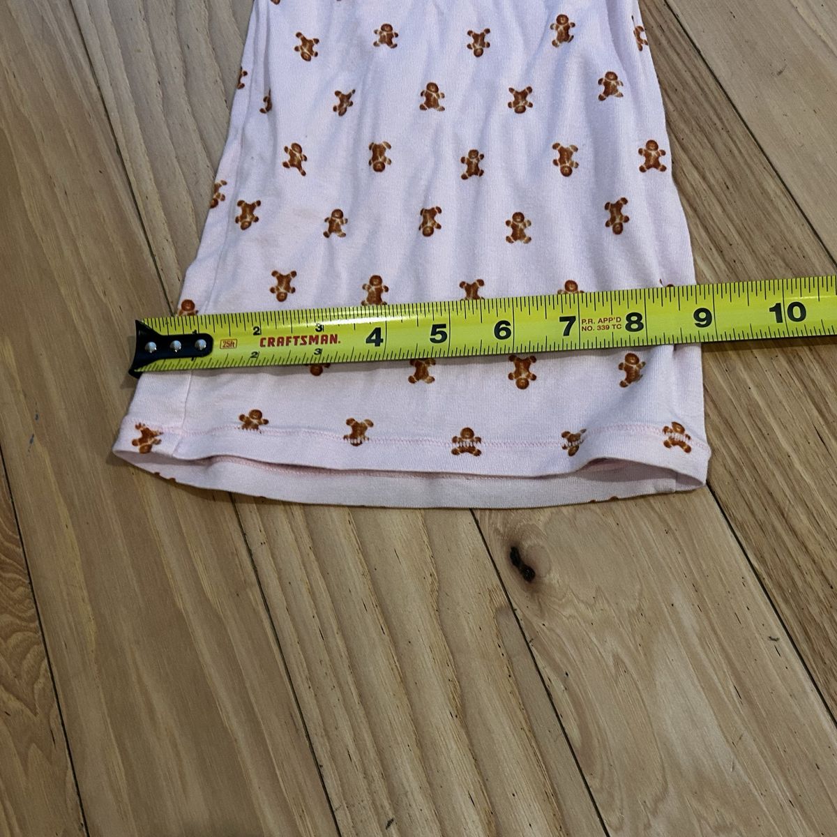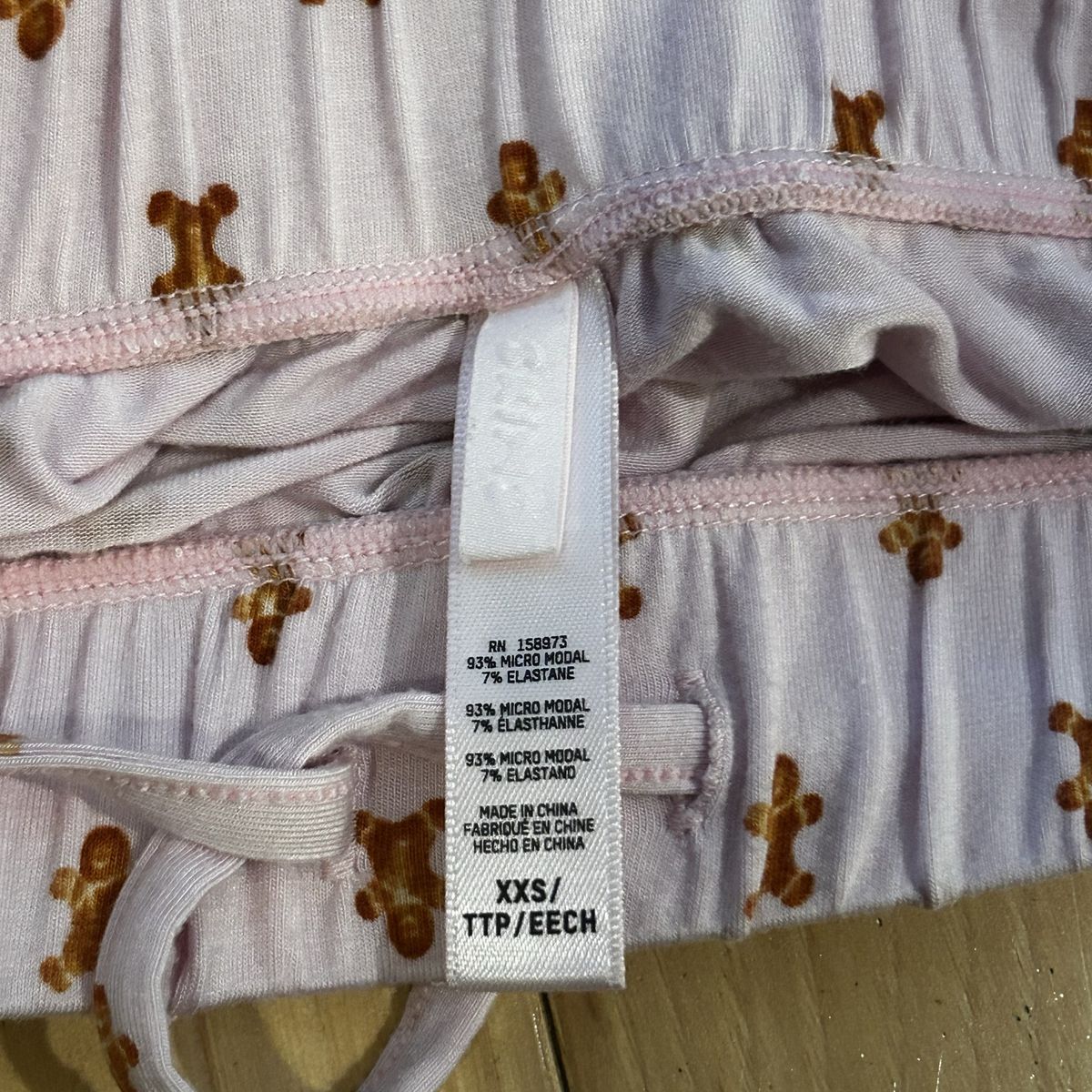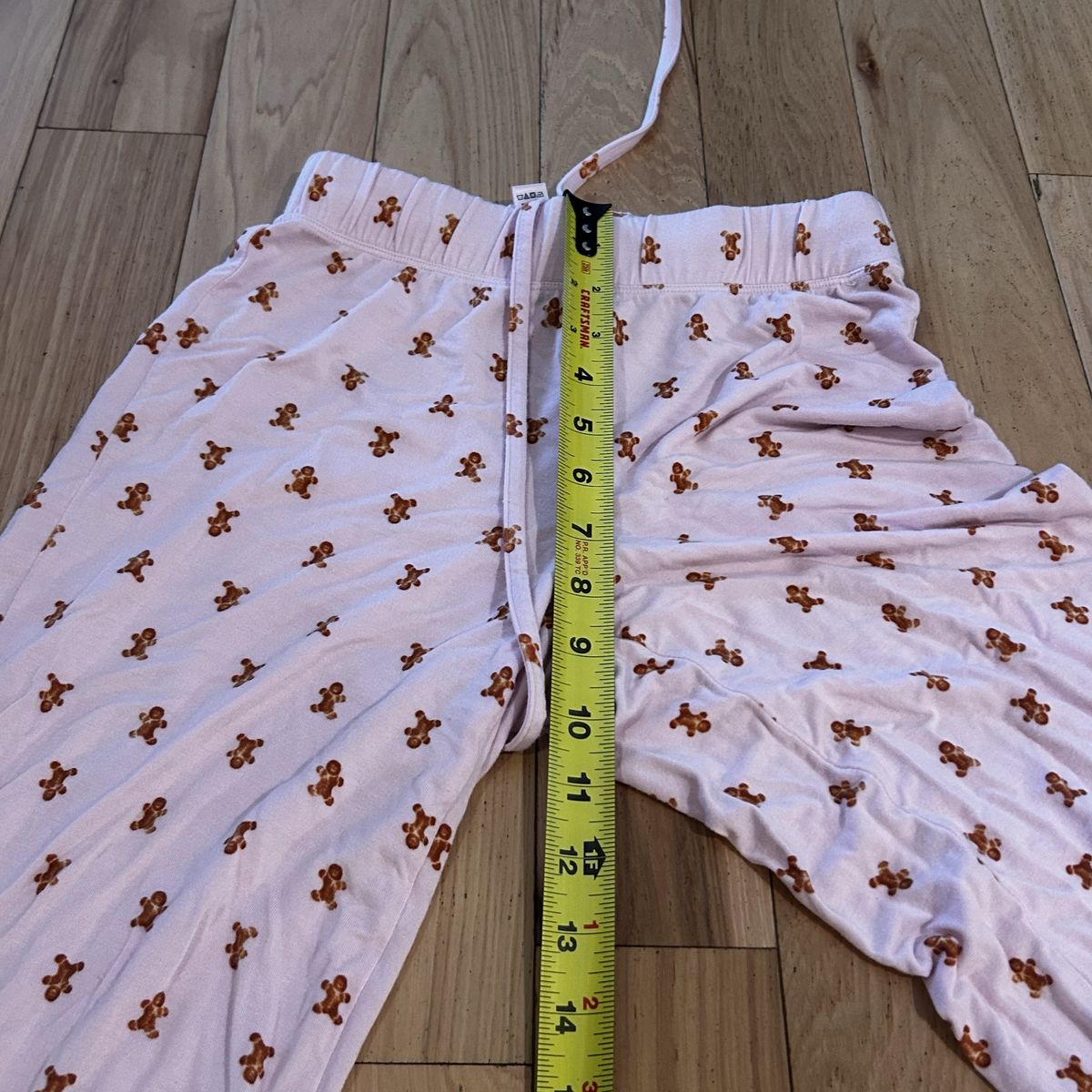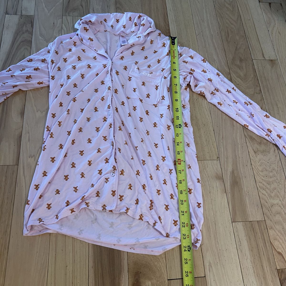 Skims Light Pink with Gingerbread Man Print 2-Piece Pajama Set - includes pull on style pants with elastic waistband and tie and long sleeve button front shirt - Women’s Size XXS - super soft and comfy - does show some minor signs of wear (some minor pilling) - pre-owned.