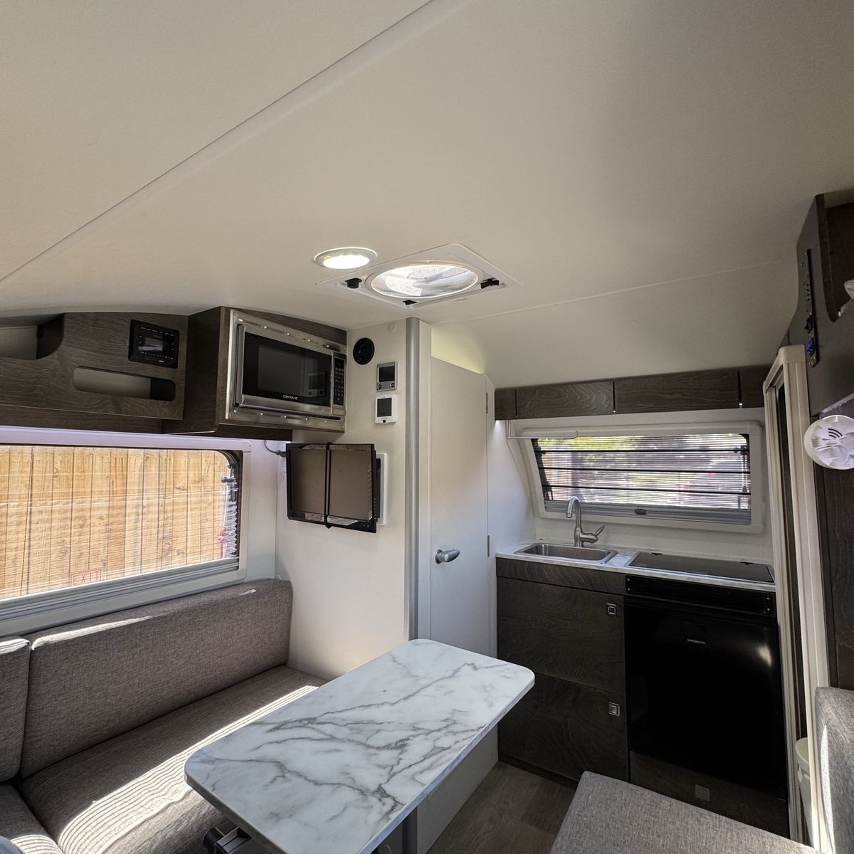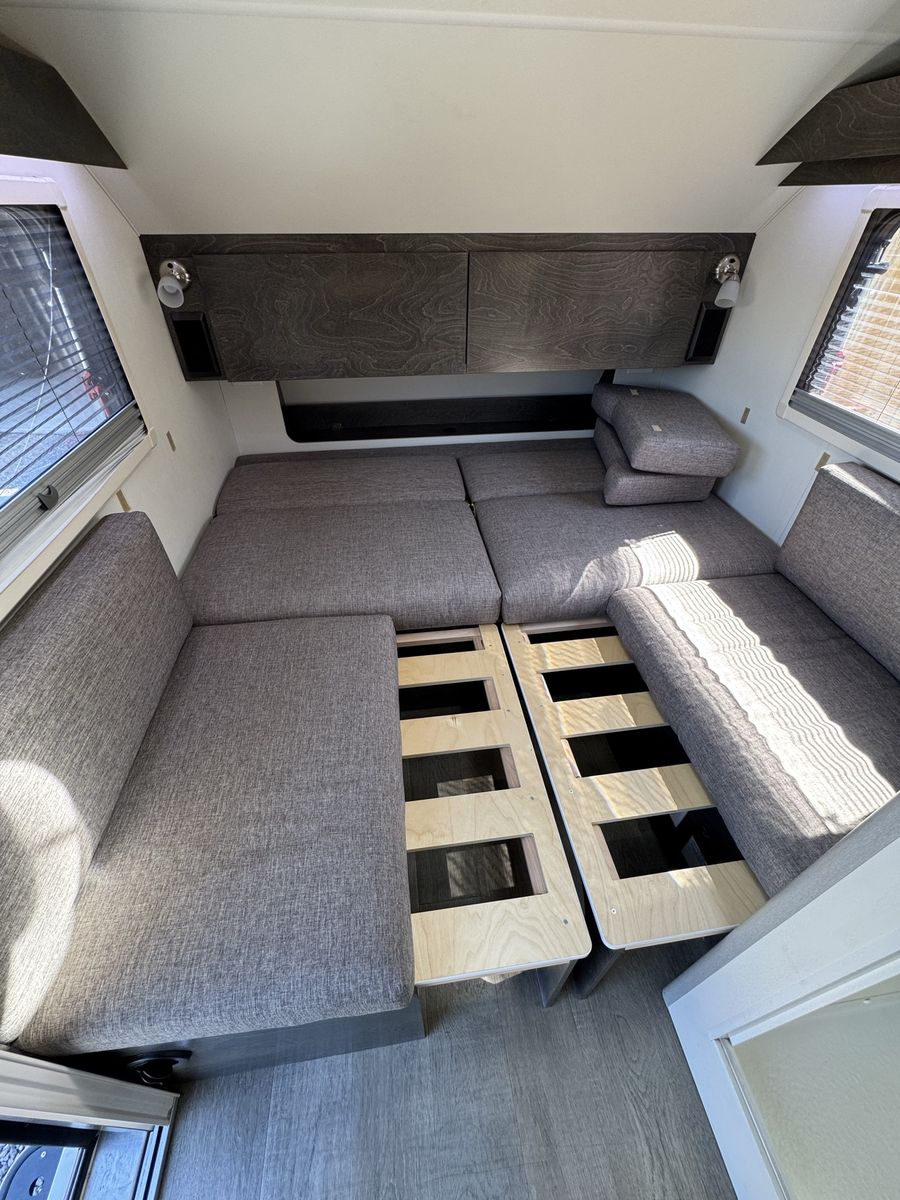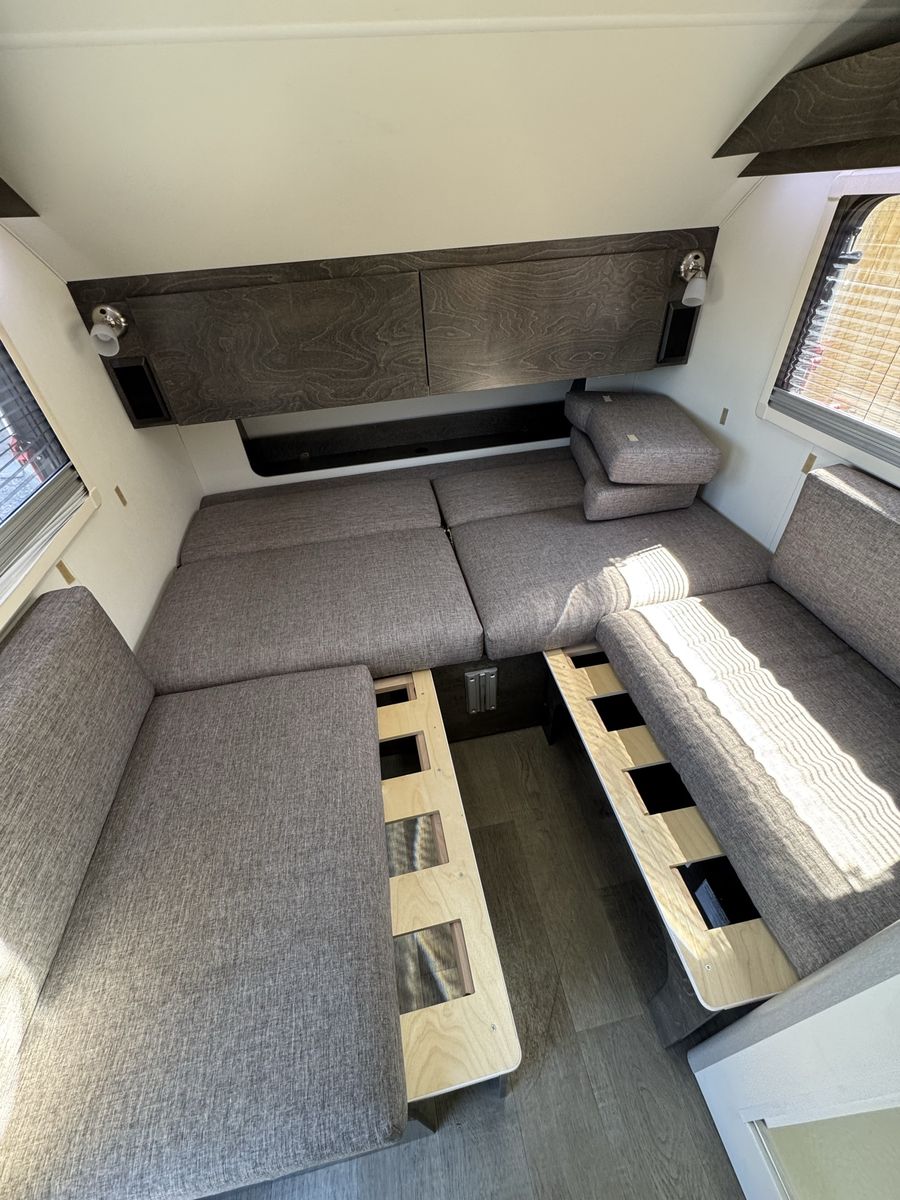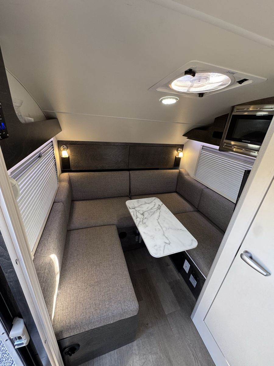 NuCamp is known for its premium craftsmanship and smart design, offering a surprisingly comfortable interior in a compact, easy-to-tow size. The TAB 320 S includes features like a full kitchenette, heating and A/C system, cassette toilet, and convertible sleeping space, all in a lightweight trailer around 15 feet long .