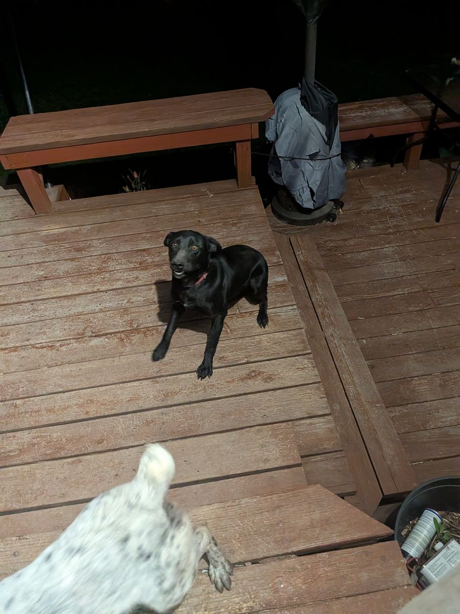 Luna is heeler/labrador mix. She is all black with a tiny patch of white on the chest. She has a lot of energy, but is really sweet and loves belly rubs. She is 3 years old.