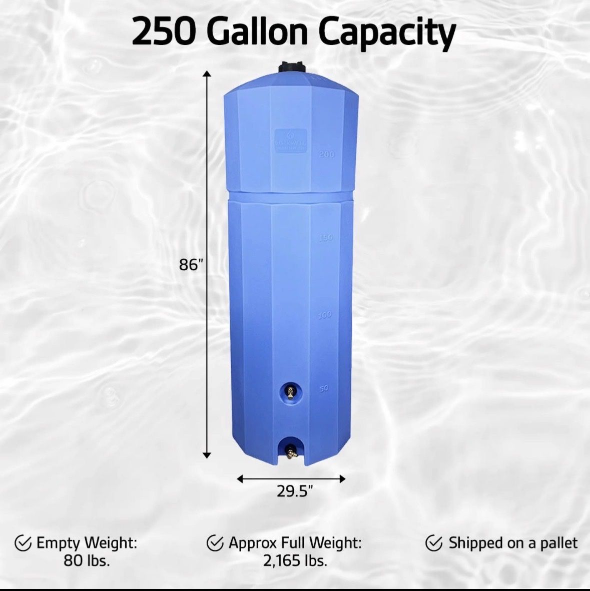The QuakeTank 250 is a durable, self-contained water tank built for safety and reliability. With a rigid design and a strapping point, it allows you to store a large amount of water securely, making it ideal for home storage, cabin use, rainwater collection, and emergency preparedness.\