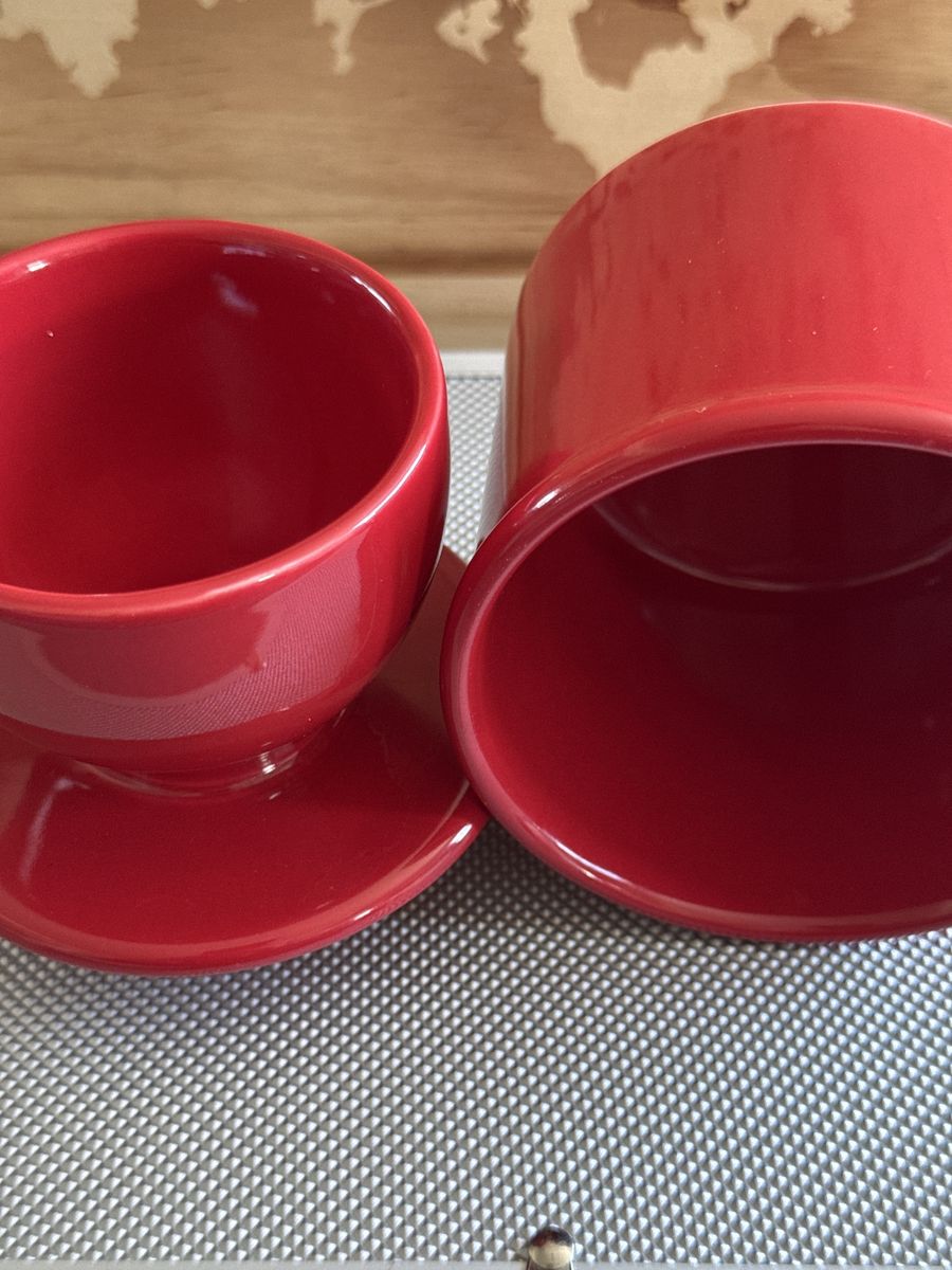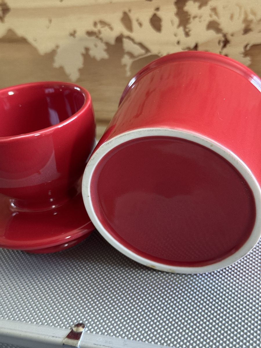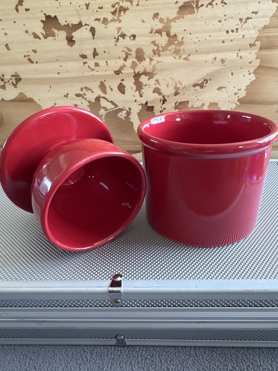 VenmoButter Bell Crock, specifically a 2-piece ceramic butter keeper with a vibrant red glaze and a white rim, $9