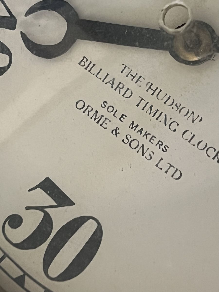VenmoA rare old 'Hudson' Billiard Timing Clock, Sole Makers ORME & SONS LTD. The company closed in the 1930's.