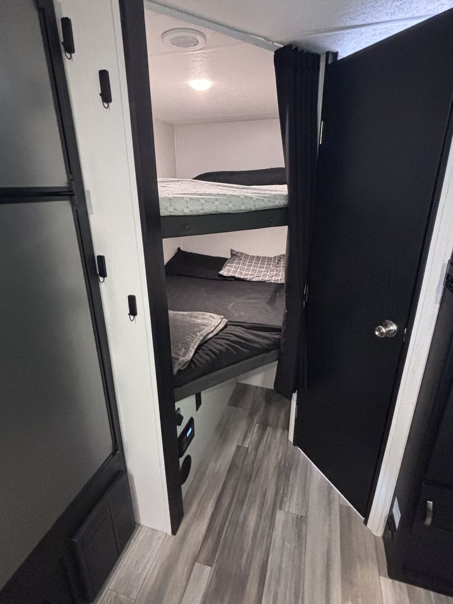 Don’t miss out on this well-loved, fully equipped, and ready-to-go trailer that feels bigger than it looks thanks to the smart design, double bunks, and slide-out. With its versatile size and solar setup, you’ll be able to take it off-grid or anywhere your adventures lead!