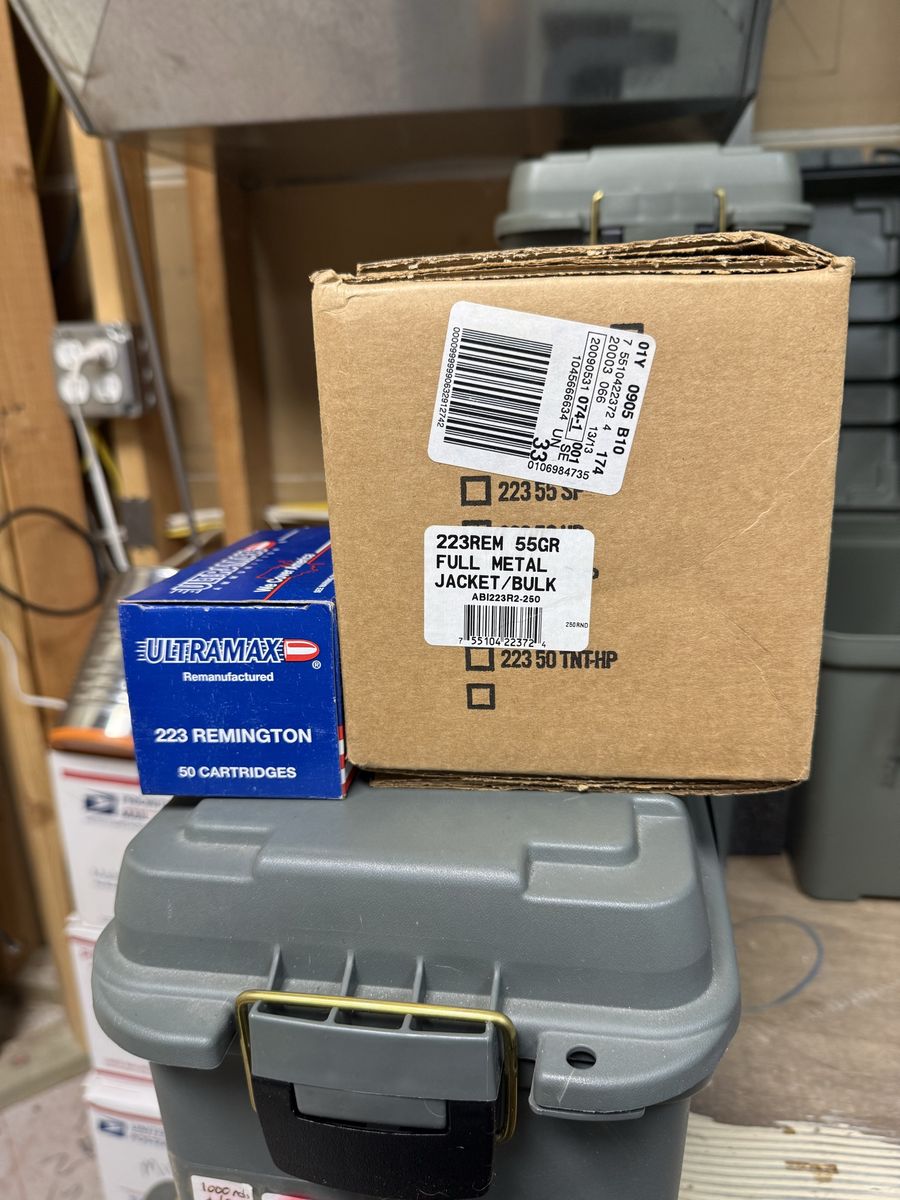 PayPalUMC/Remington 223 FMJ: 12 boxes of 250 per box, total 3000 rounds. $125 for a box of 250. $1500.