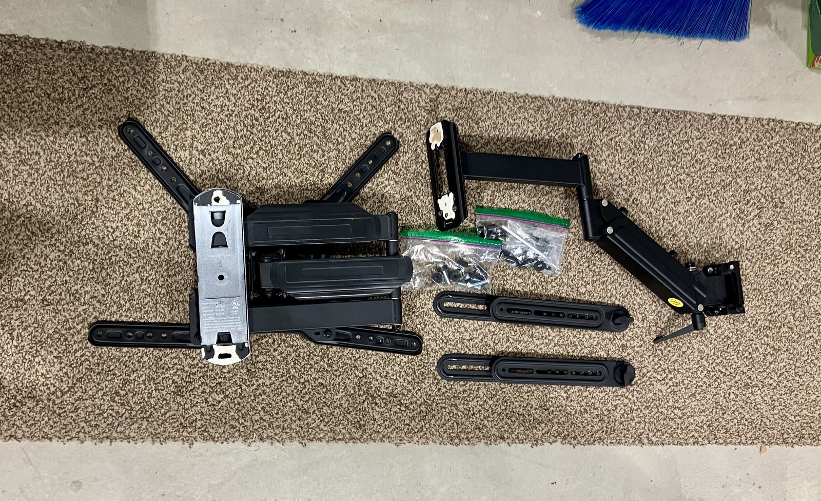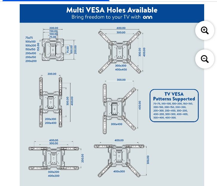 Includes optional top soundbar attachment and a variety of nuts and washers to fit different tvs.