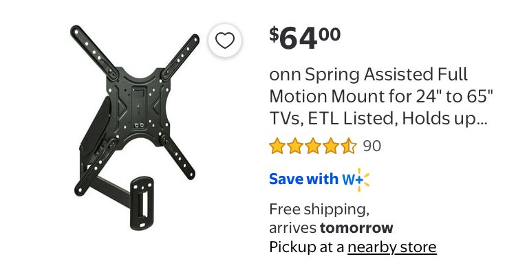VenmoONN Spring Assisted Full Motion Mount for 24" to 65" TVs, Holds upto 77 lbs