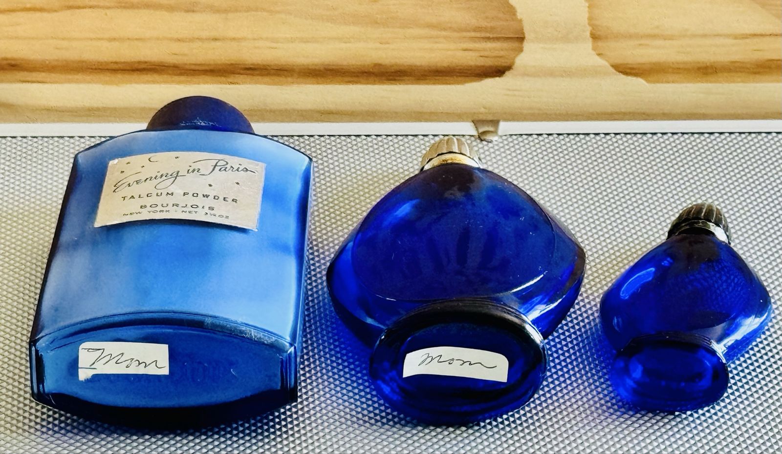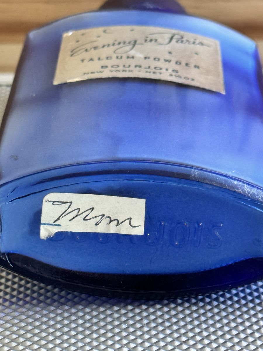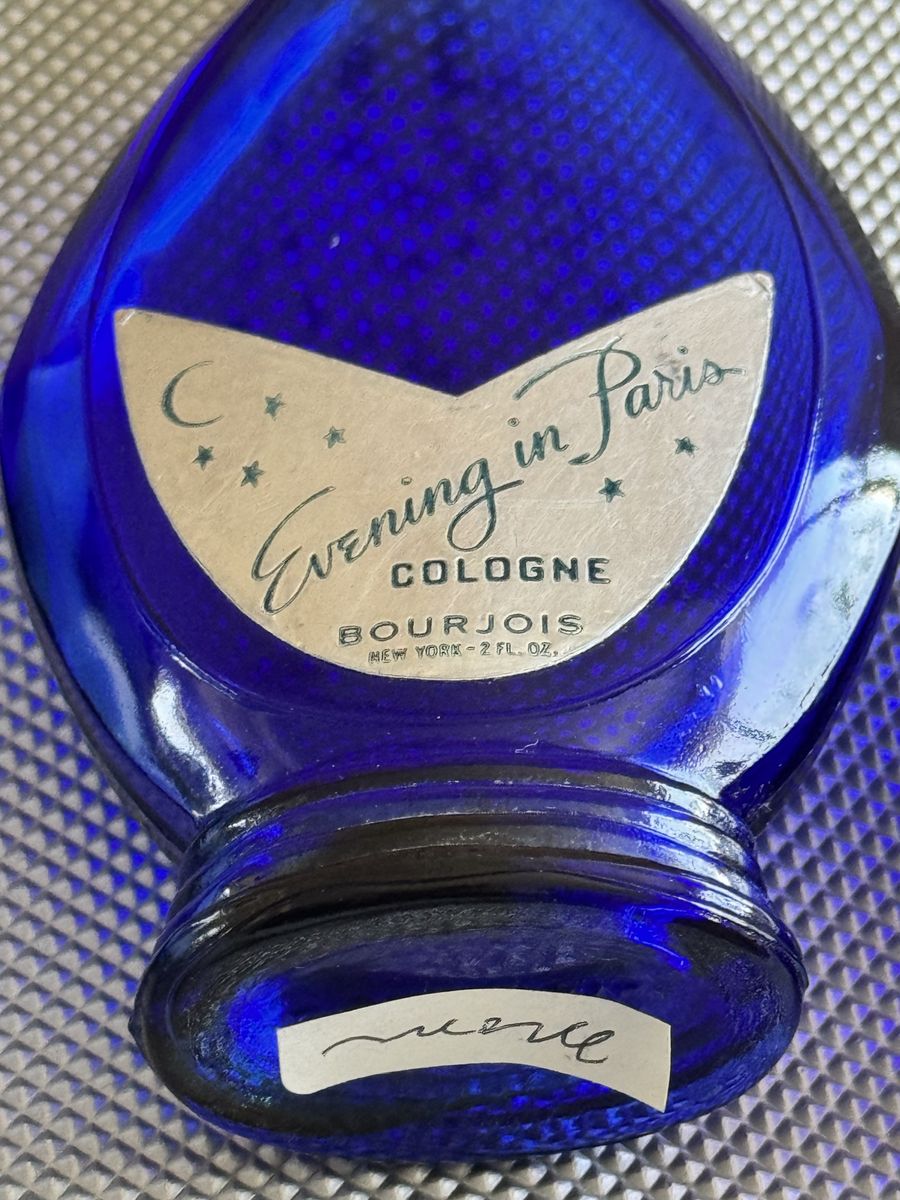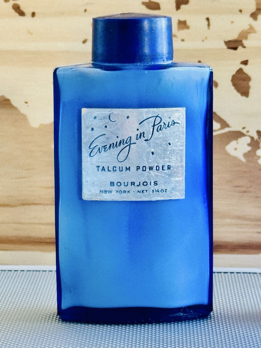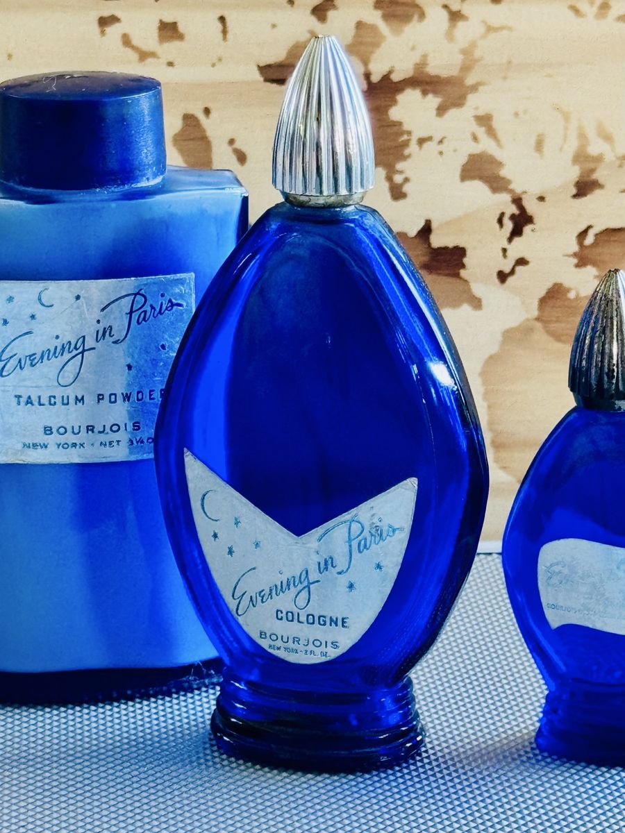 VenmoVintage Bourjois "Evening in Paris" (Soir de Paris) products from the mid-20th century, identifiable by their iconic cobalt blue glass bottles and silver caps. Cobalt Blue Glass: The bottles are made of distinct, deep blue glass, which is highly sought after by collectors. $16
