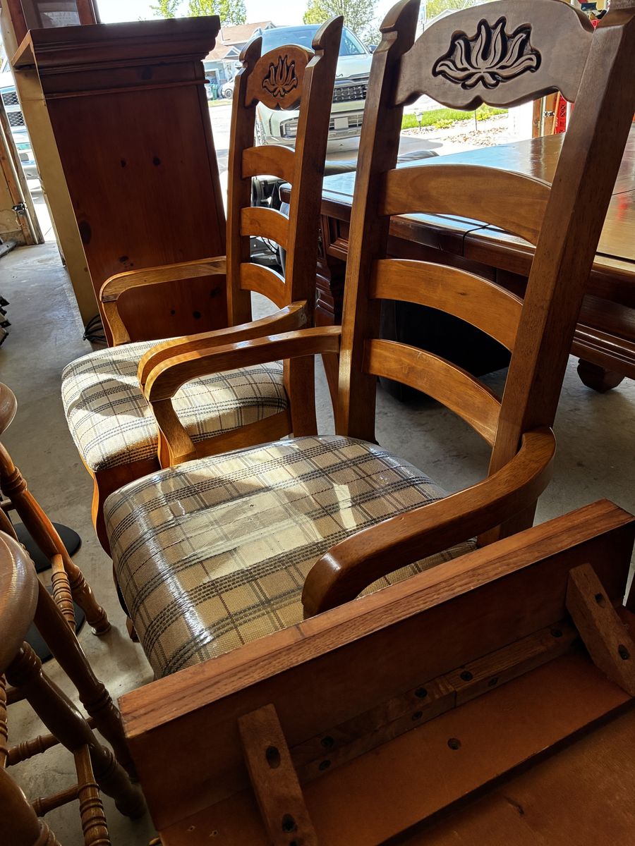 Solid wood table. Remodeled and no longer need. Comes with 4 chairs and leaf. 42”x54”x30.5” high. 18” longer with leaf Asking $50 obo. You must pick up.